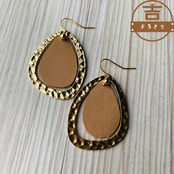 大ぶりな牛革レザーのハンドメイドピアスです。