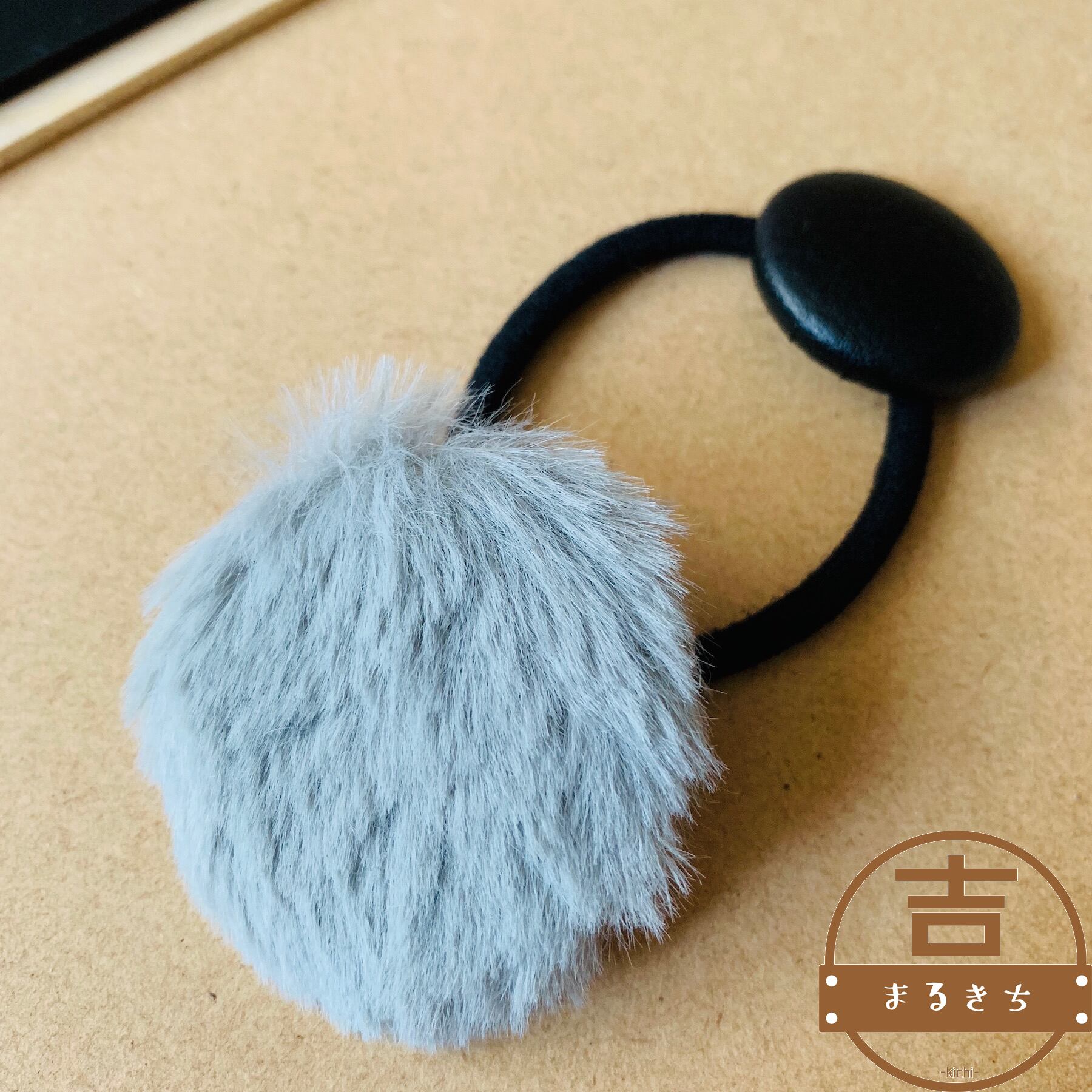 ハンドメイドヘアゴム◯フェイクファーくるみボタンヘアゴム◯グレー◯冬コーデに