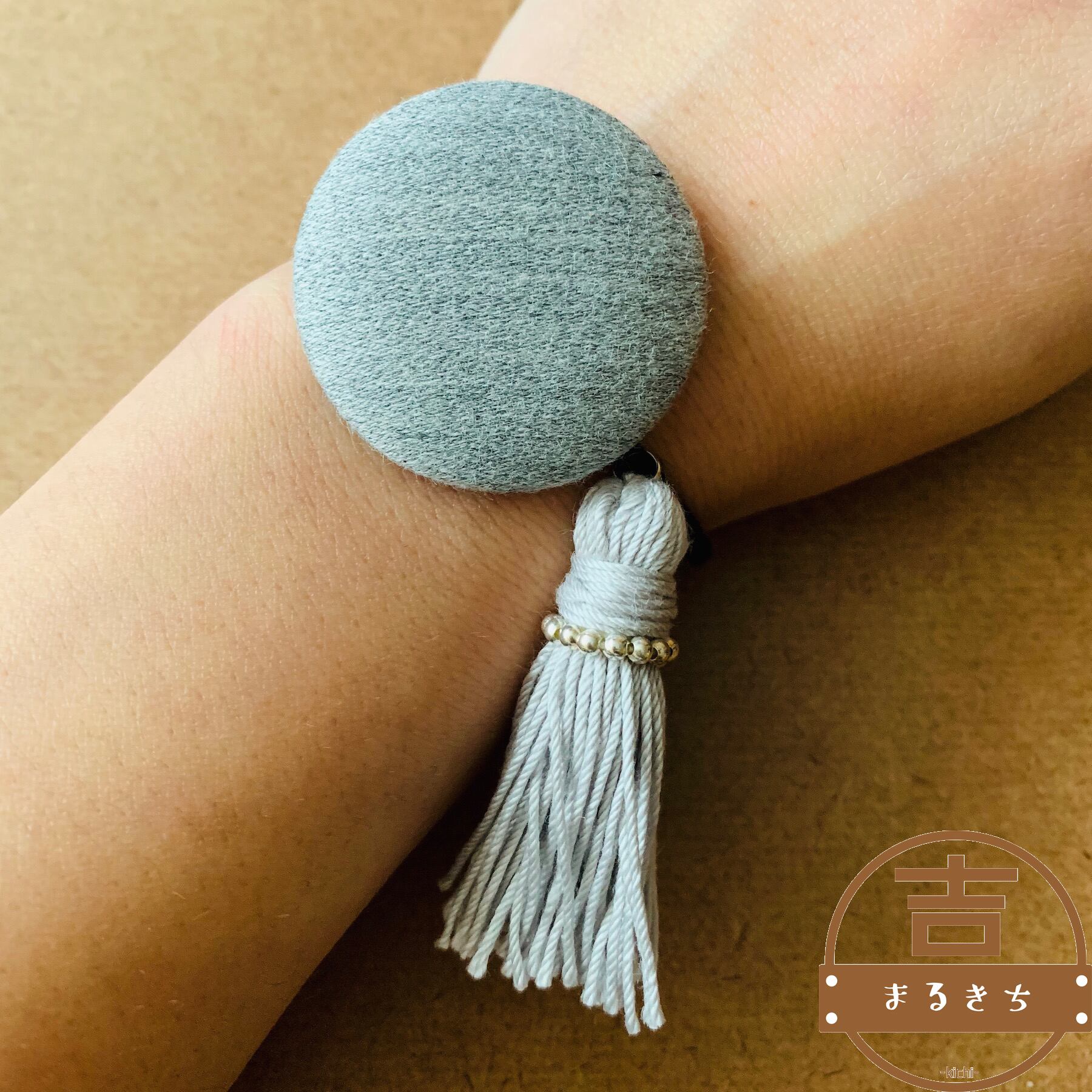 ハンドメイドシンプルヘアゴム◯くるみボタンヘアゴム◯タッセル付きヘアゴム◯グレー