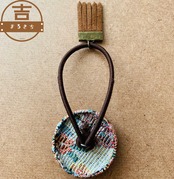 タッセル付きゴブランベージュハンドメイドヘアゴム◯フェイクレザータッセル茶◯くるみボタンヘアゴム
