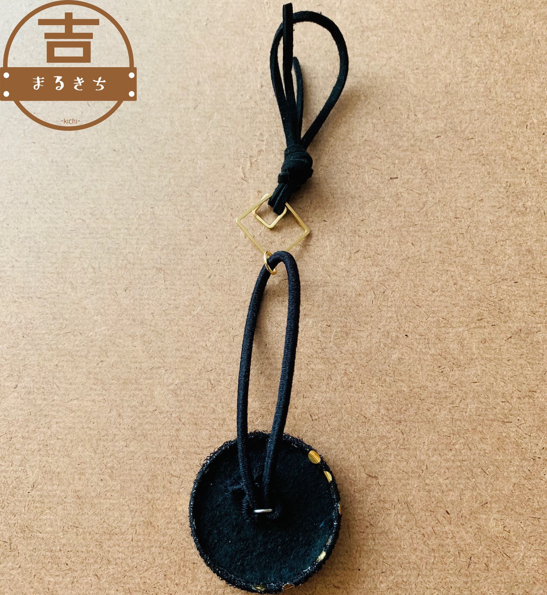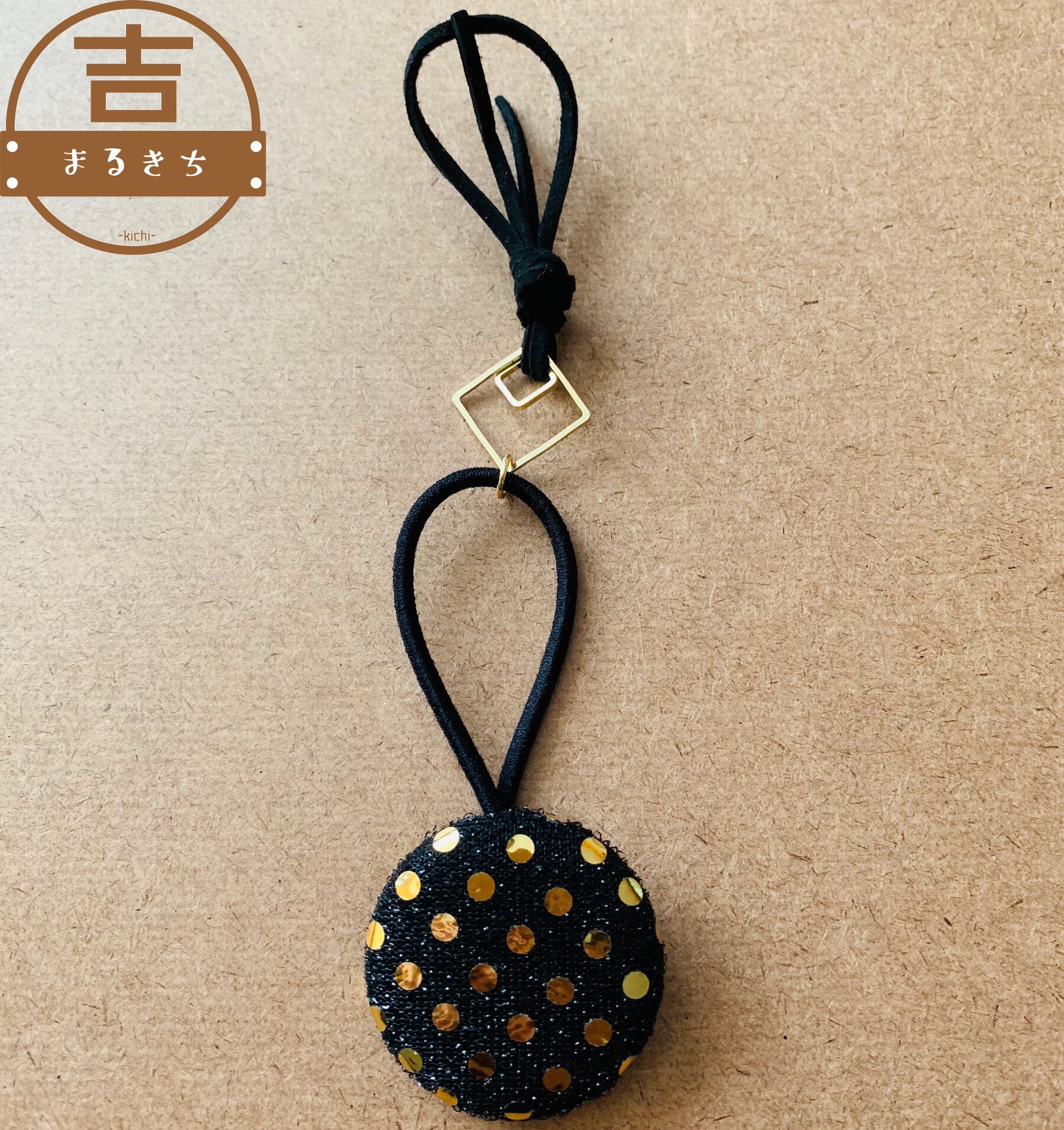 きらきらドット柄のハンドメイドヘアゴム◯くるみボタンヘアゴム◯スウェードチャーム付きヘアゴム