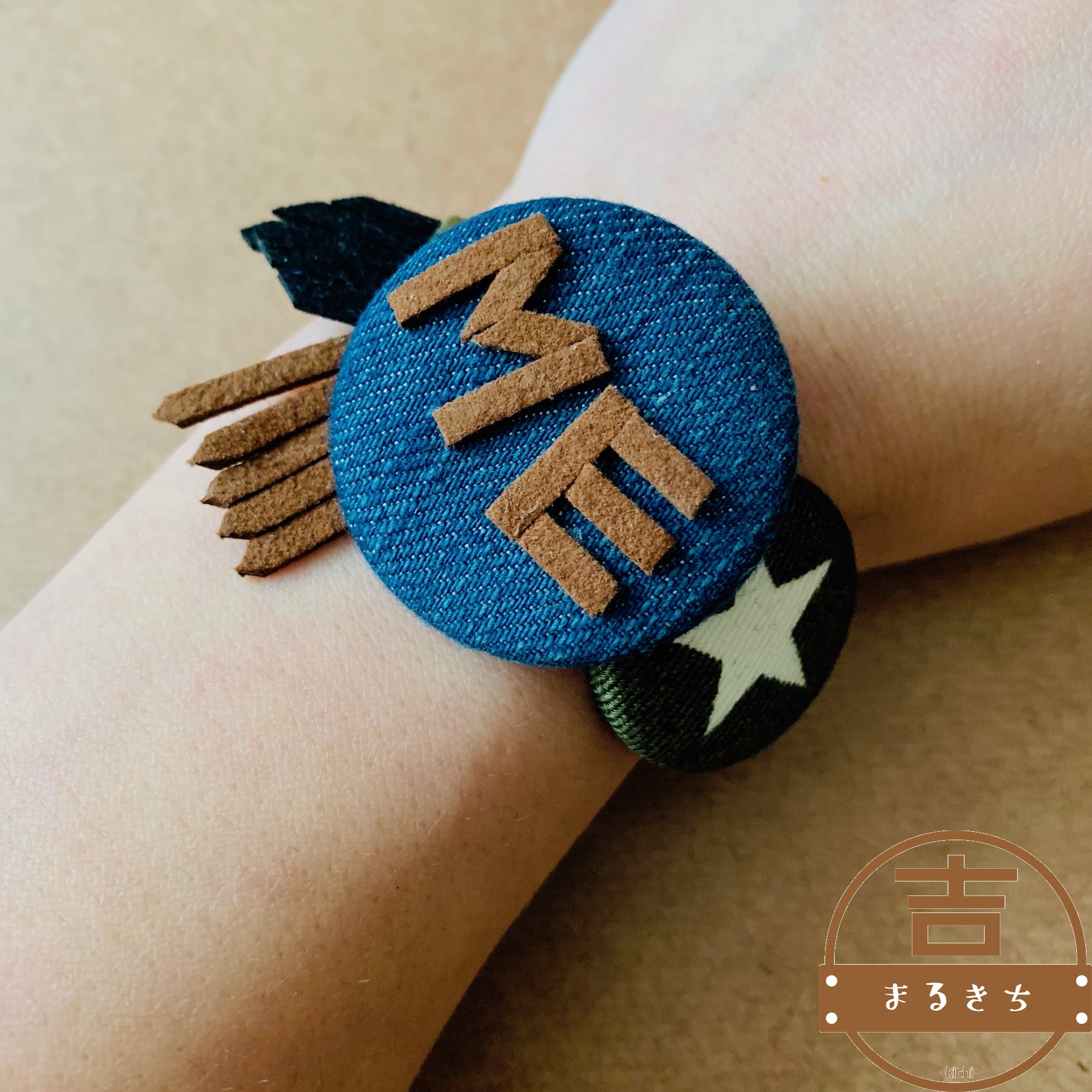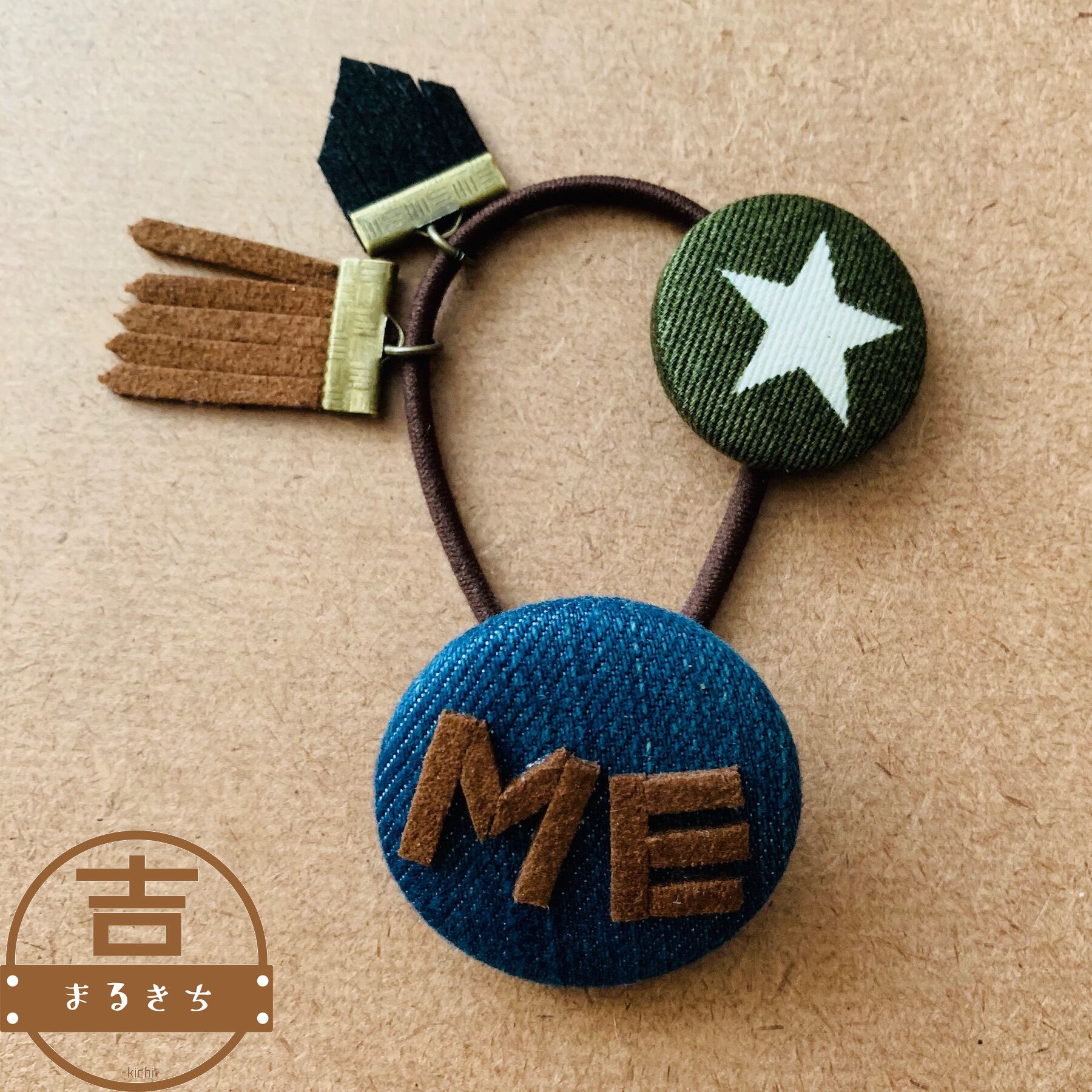 「ME」デニムのハンドメイドヘアゴム◯くるみボタンヘアゴム◯ワニ口パーツ
