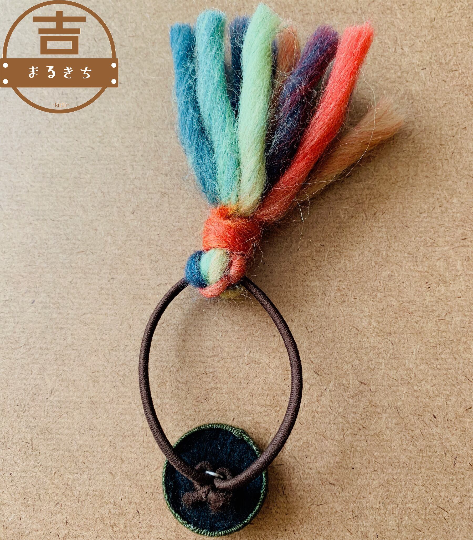 星柄クルミボタンのハンドメイドヘアゴム◯スキーバンビ毛糸タッセル付き◯くるみボタンヘアゴム