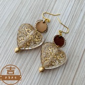 ハート型のクリアアンティークパーツのピアス◯大ぶりピアス◯大人可愛いピアス