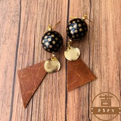 ゴールドドットビーズ大ぶりな牛革レザーのハンドメイドピアスです。