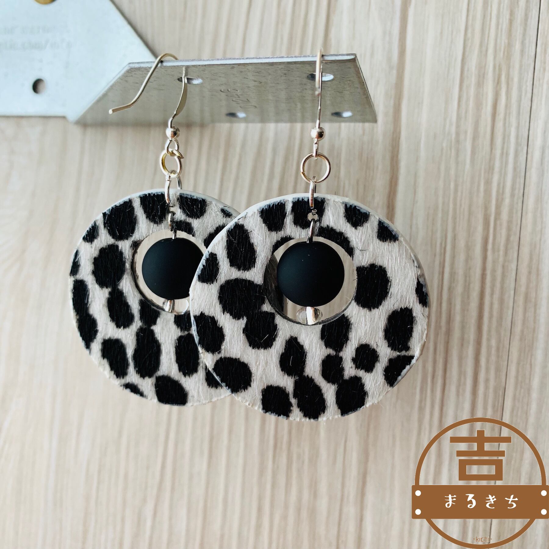 ダルメシアン柄 ハラコ風リングとマットビーズのピアス◯大振りピアス◯アニマル柄