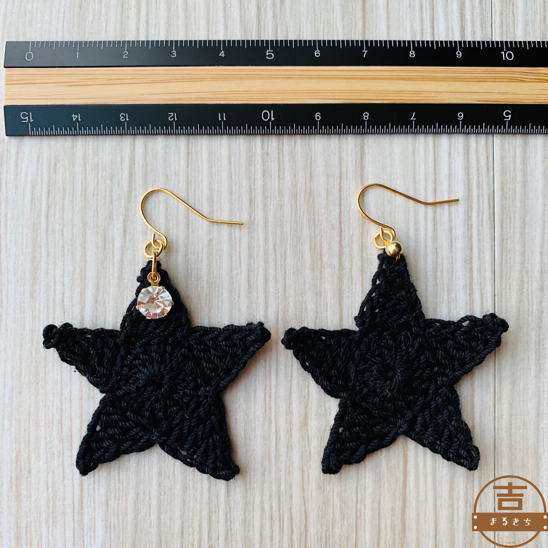 スターピアス ブラック◯プチプラピアス◯かぎ針編みモチーフピアス◯ハンドメイドピアス◯星型ピアス