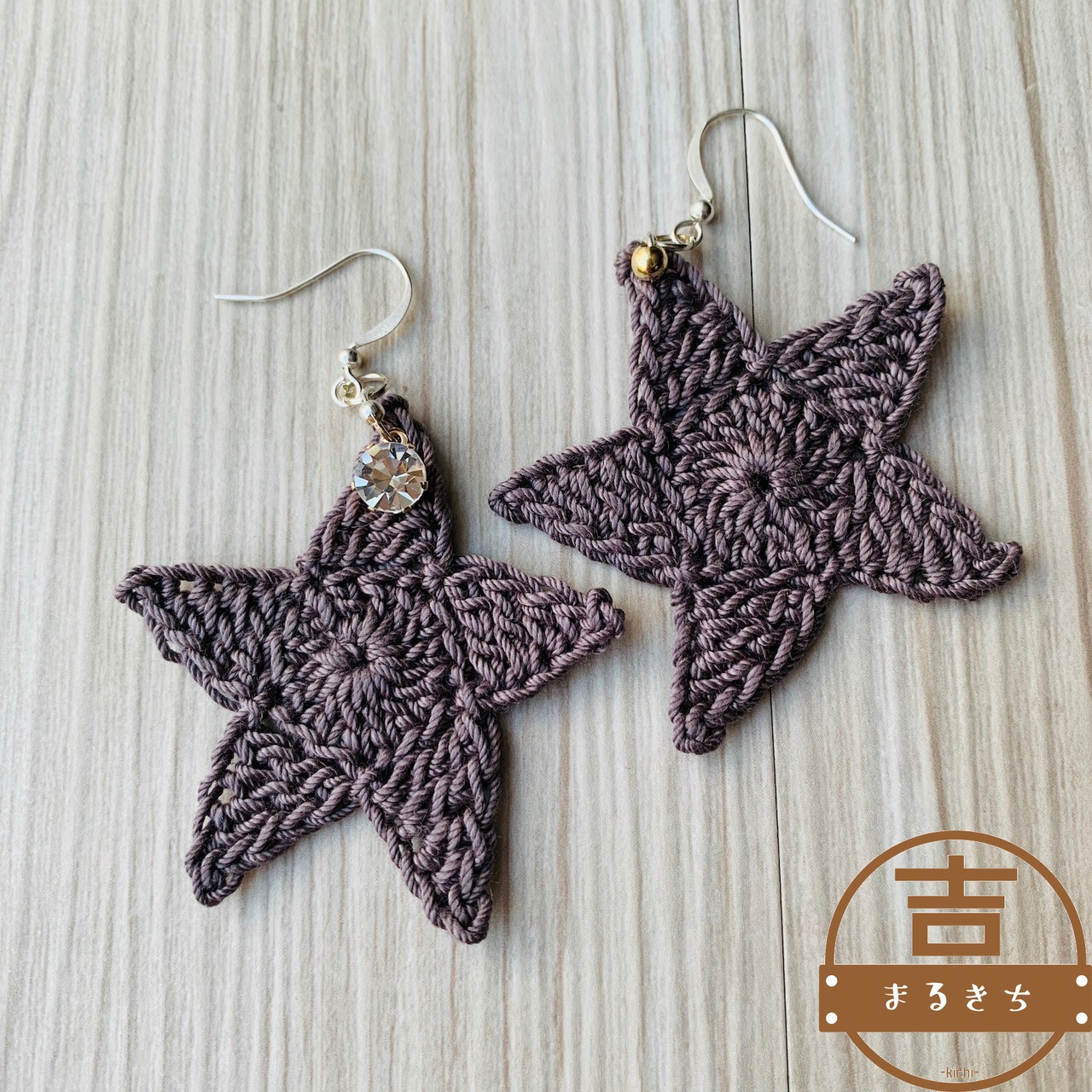 スターピアス グレー◯プチプラピアス◯かぎ針編みモチーフピアス◯ハンドメイドピアス◯星型ピアス