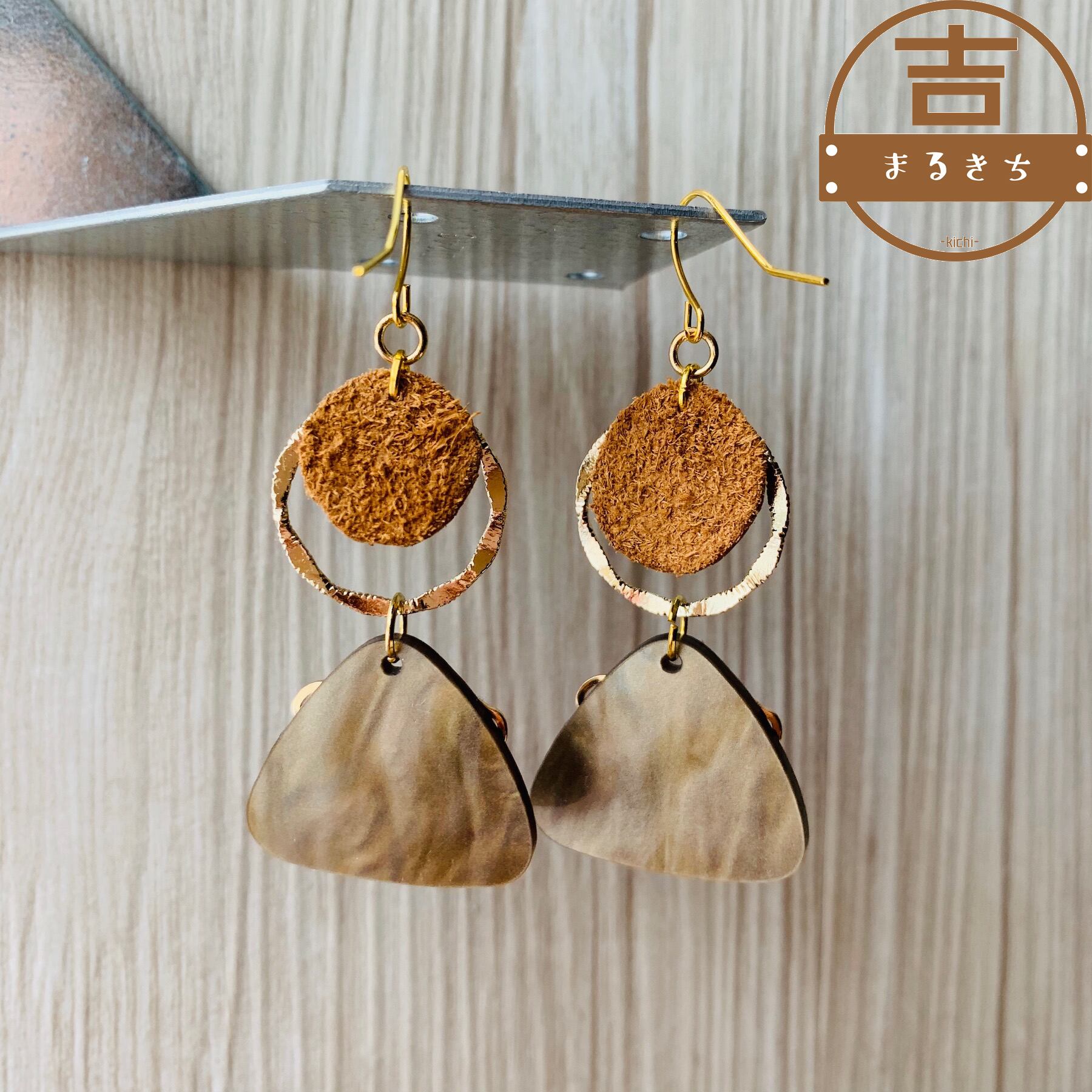 牛革レザーと花型パーツのハンドメイドピアスです。