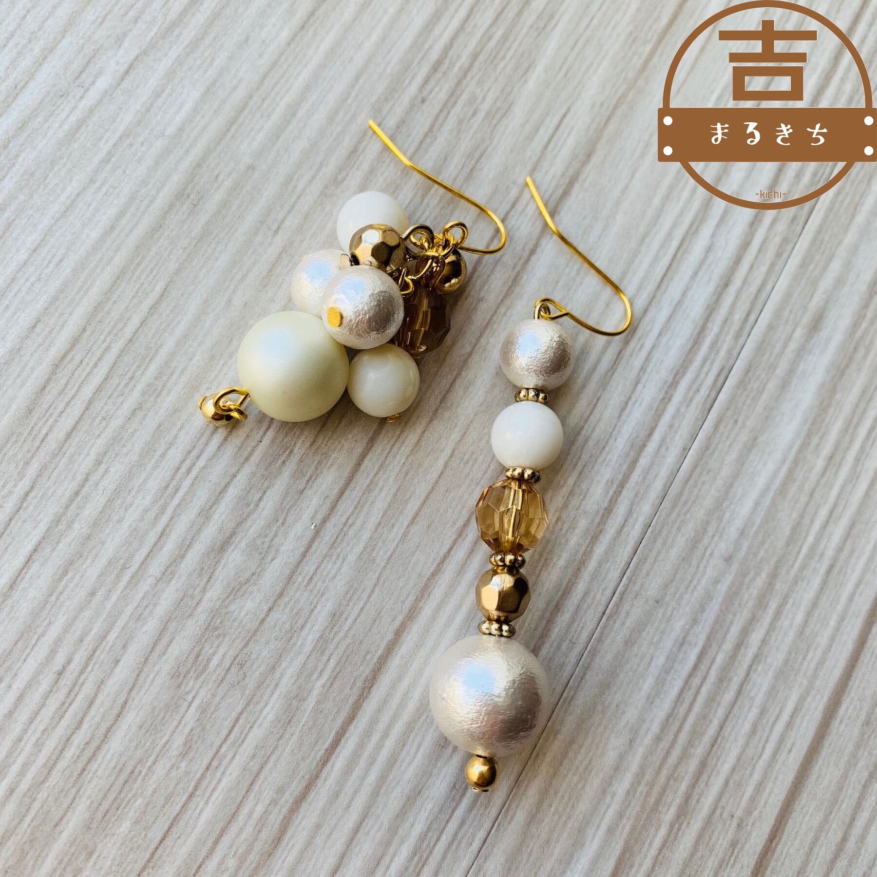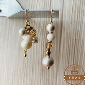 コットンパールとパールの揺れる大人ピアス◯アシンメトリーピアス◯ハンドメイドピアス
