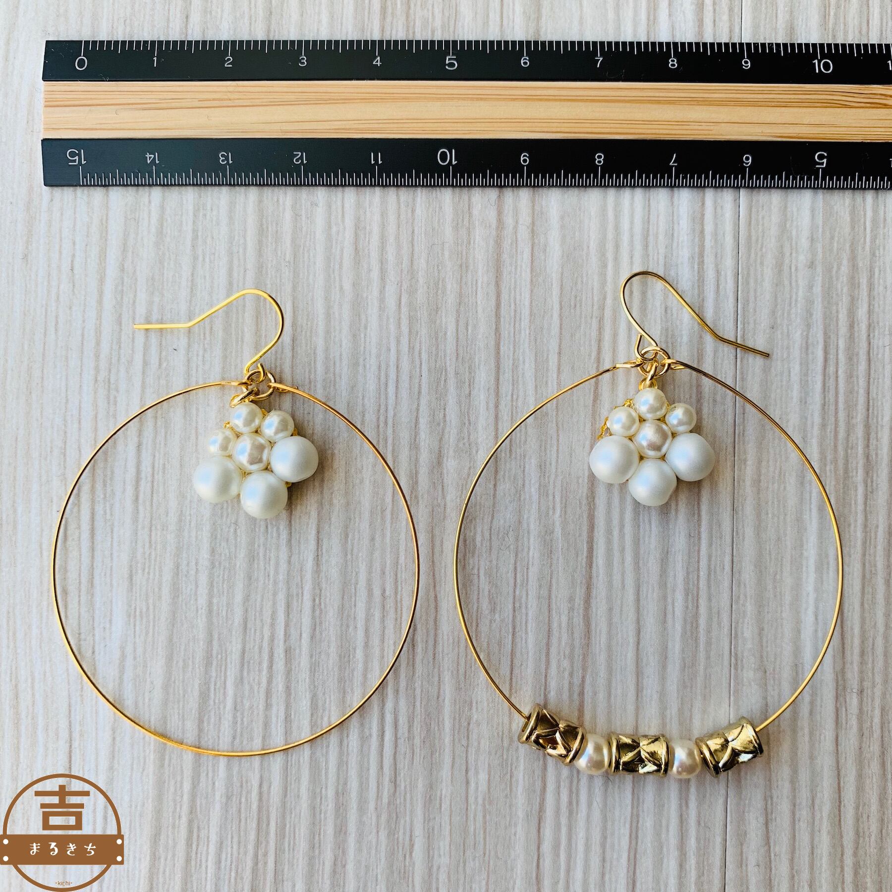 揺れるフープピアス◯大ぶりピアス◯アシンメトリーピアス◯ハンドメイドピアス