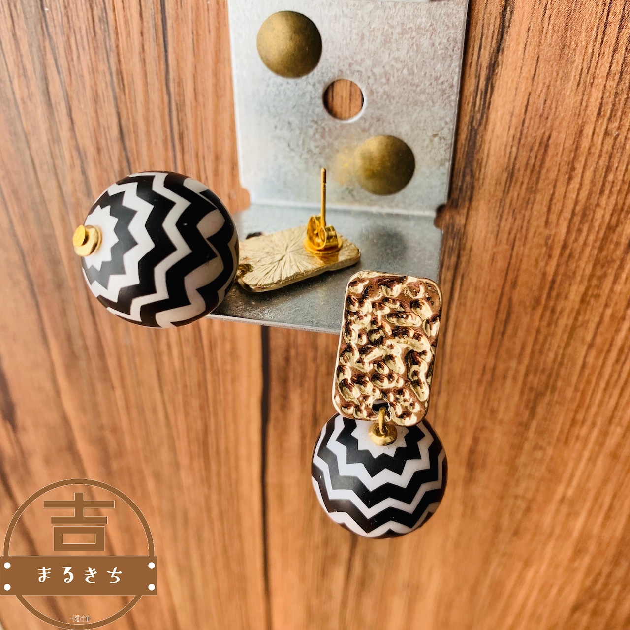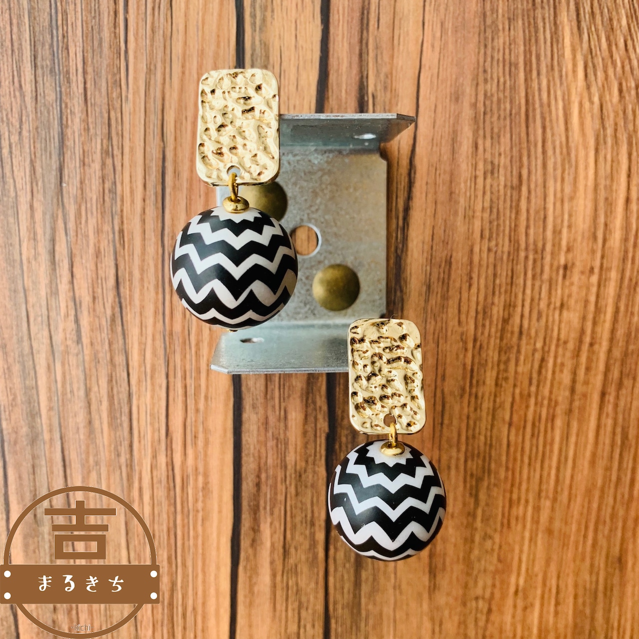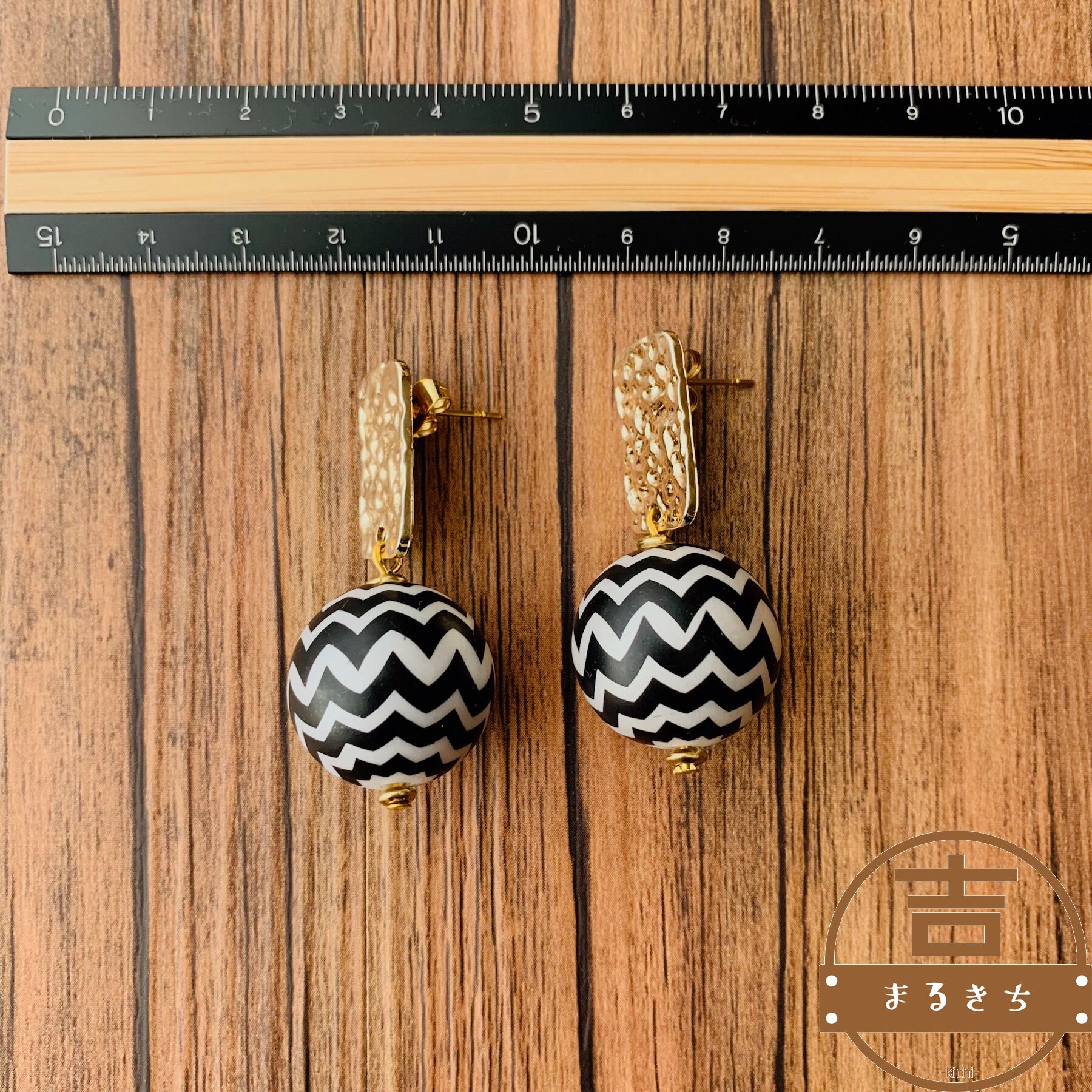 シェブロン柄ビーズとゴールドプレートのピアス◯大ぶりピアス◯個性的ピアス◯ハンドメイドピアス