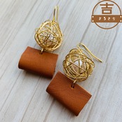 大ぶりな牛革レザーとワイヤーボールのハンドメイドピアスです。