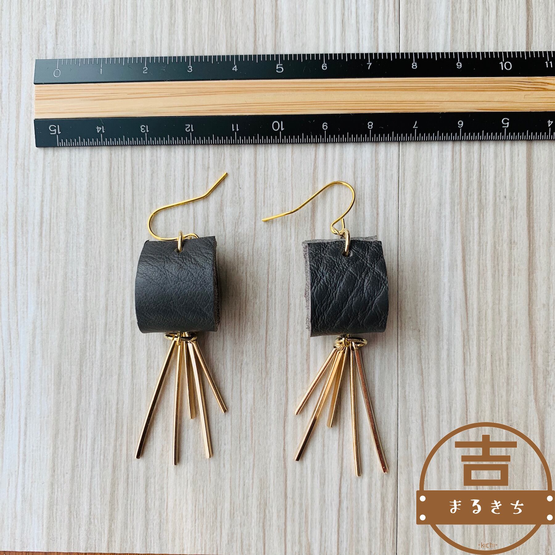大ぶりな牛革レザーとスティックピンのハンドメイドピアスです。