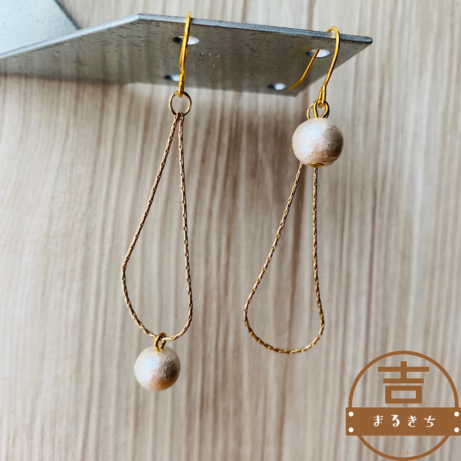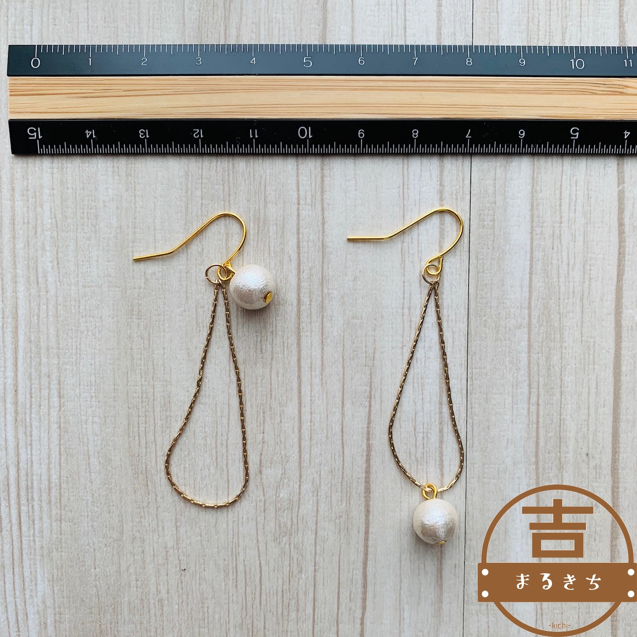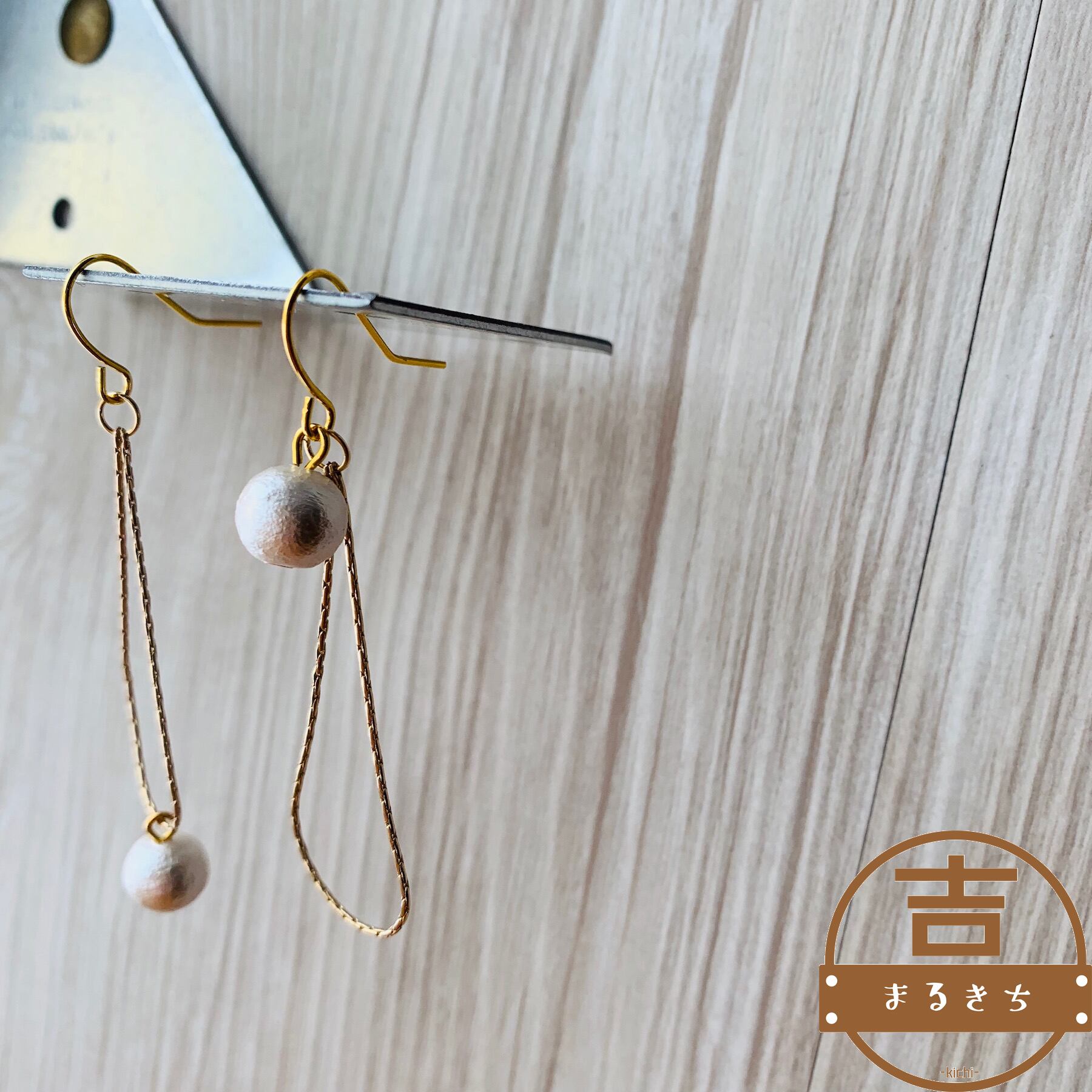 揺れるコットンパールの大人シンプルピアス◯ハンドメイドピアス◯チェーンピアス