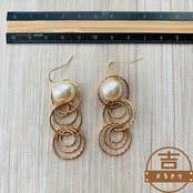 大ぶりなビーズと丸の連続ハンドメイドピアスです。