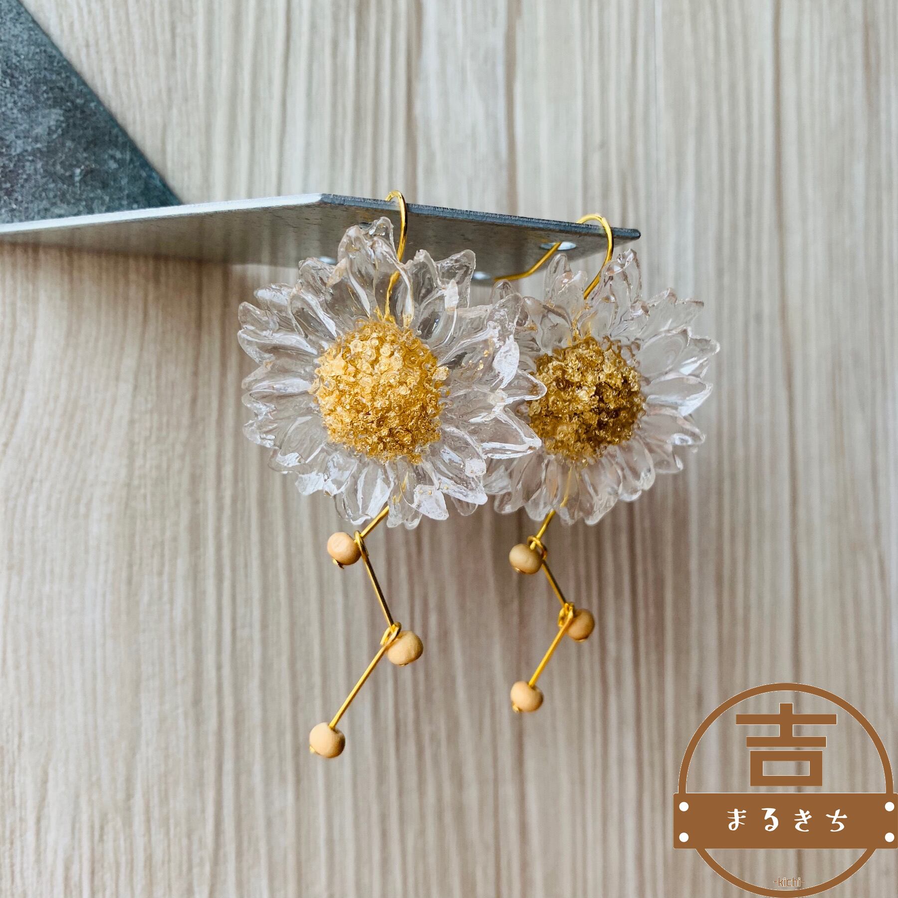 花のピアス◯クリアフラワーの揺れるピアス◯春夏ピアス◯ハンドメイドピアス