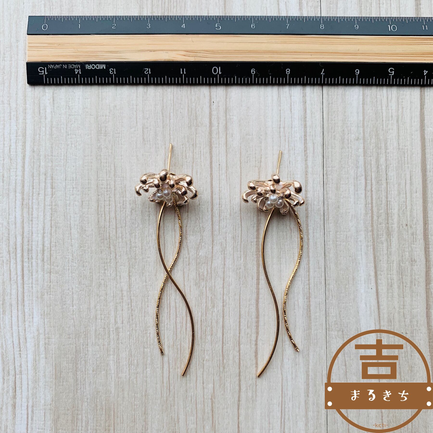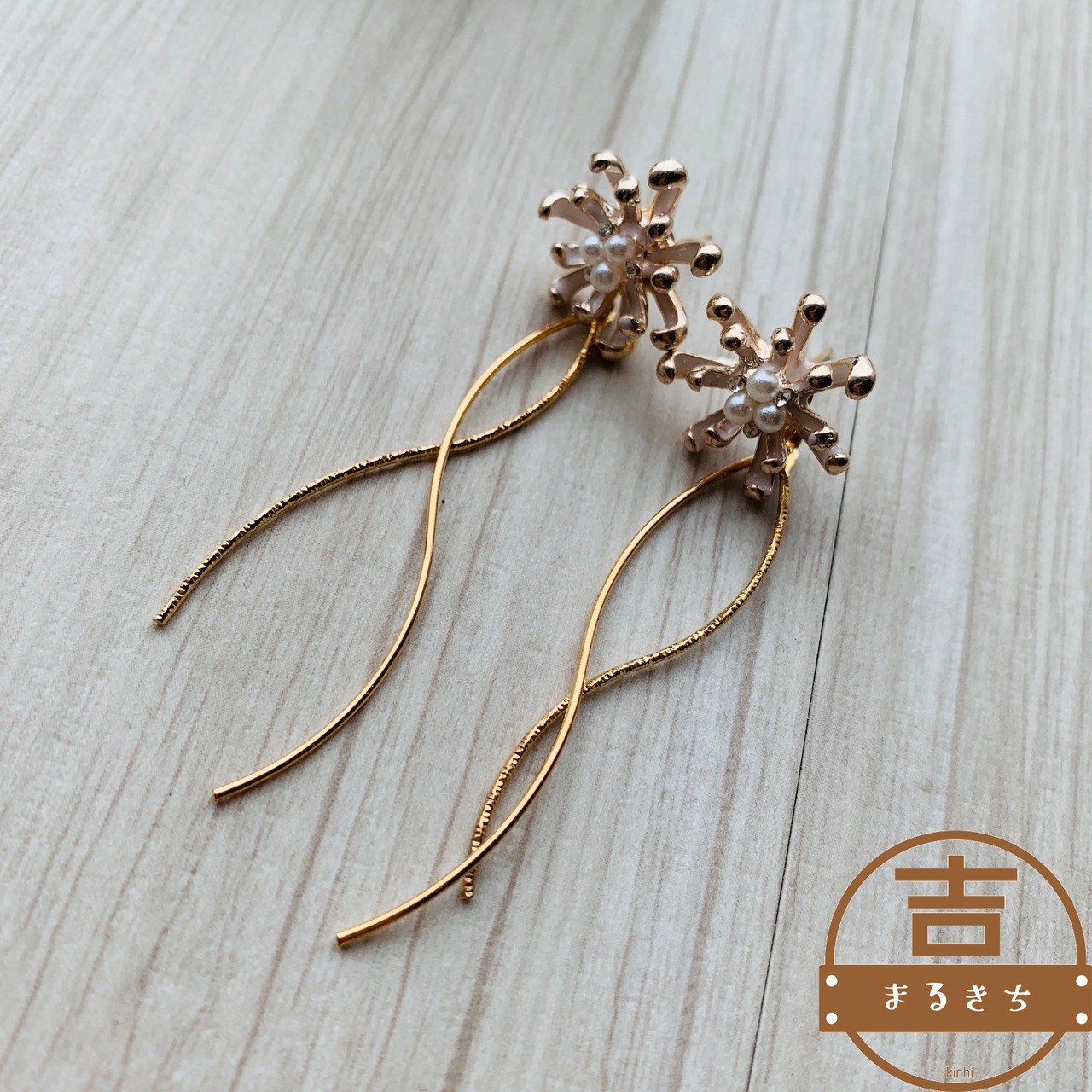 お花のピアス◯大人フラワーとひねりゴールドの揺れるピアス◯ハンドメイドピアス