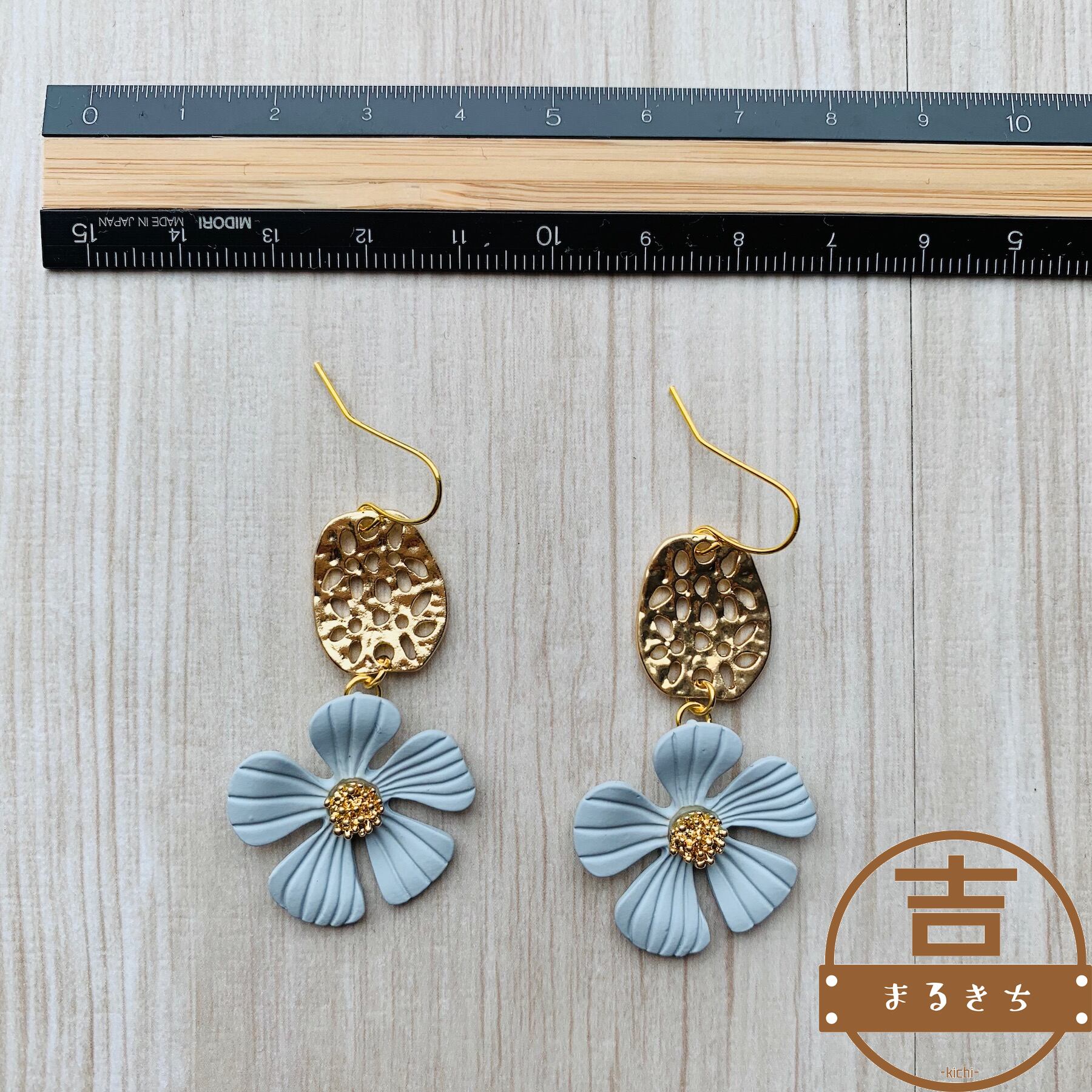 マットフラワーピアス◯マットカラーのお花とゴールドパーツのピアス◯ハンドメイドピアス◯春夏ピアス
