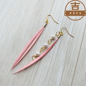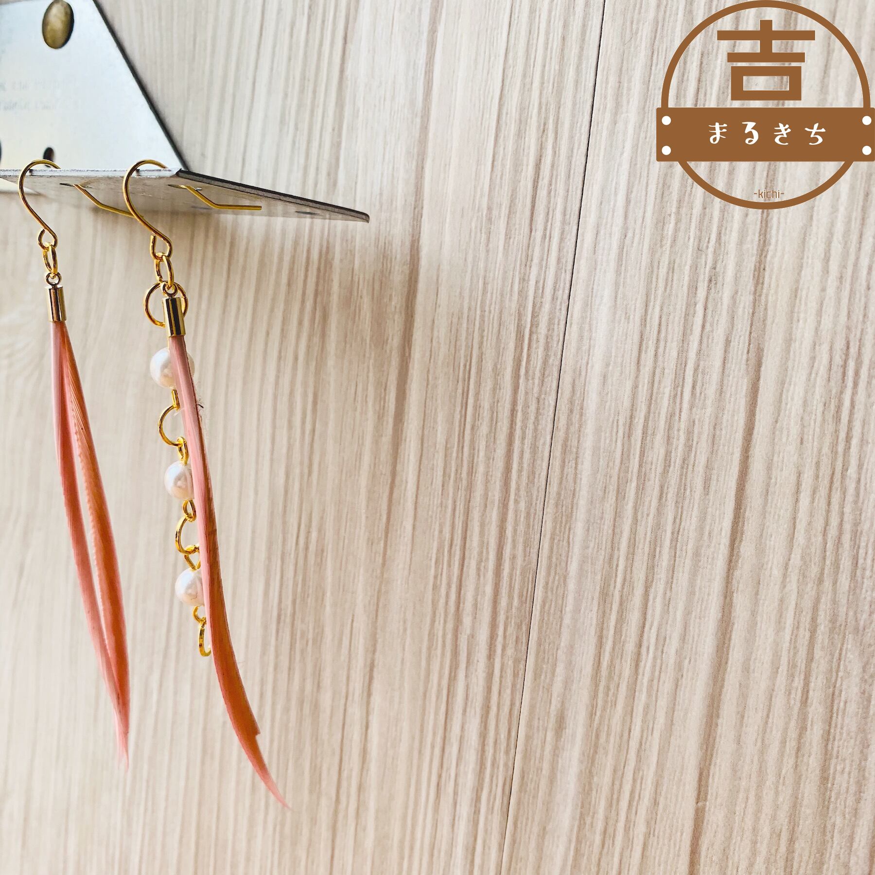 フェザーピアス◯シンプルロング羽根ピアス◯ピンク◯イヤリング変更可能◯ハンドメイドピアス