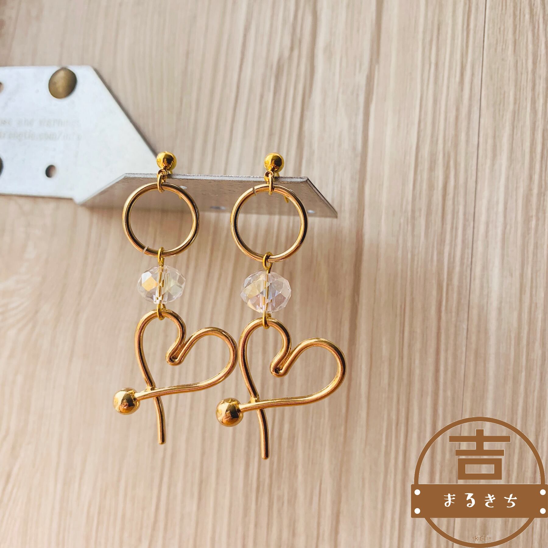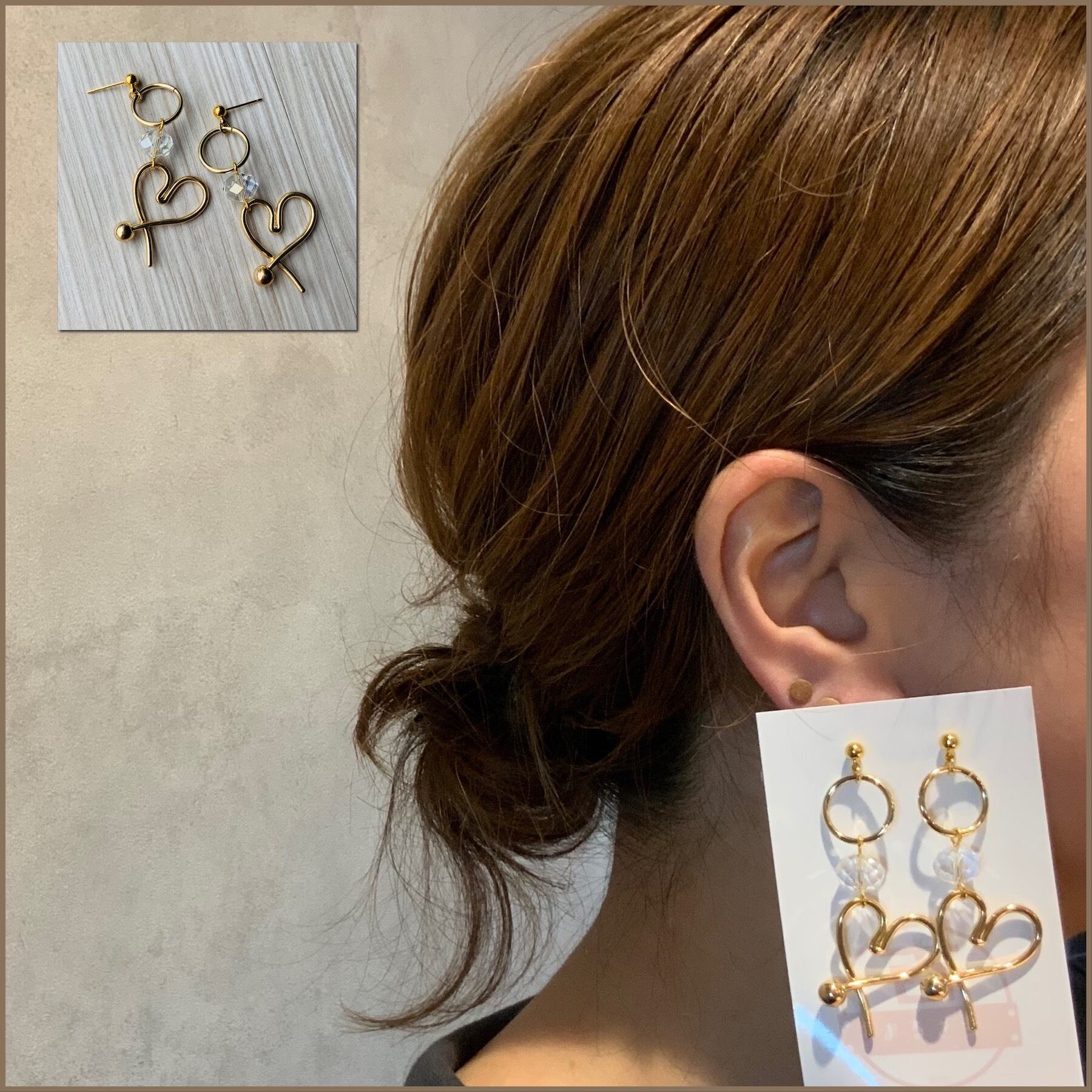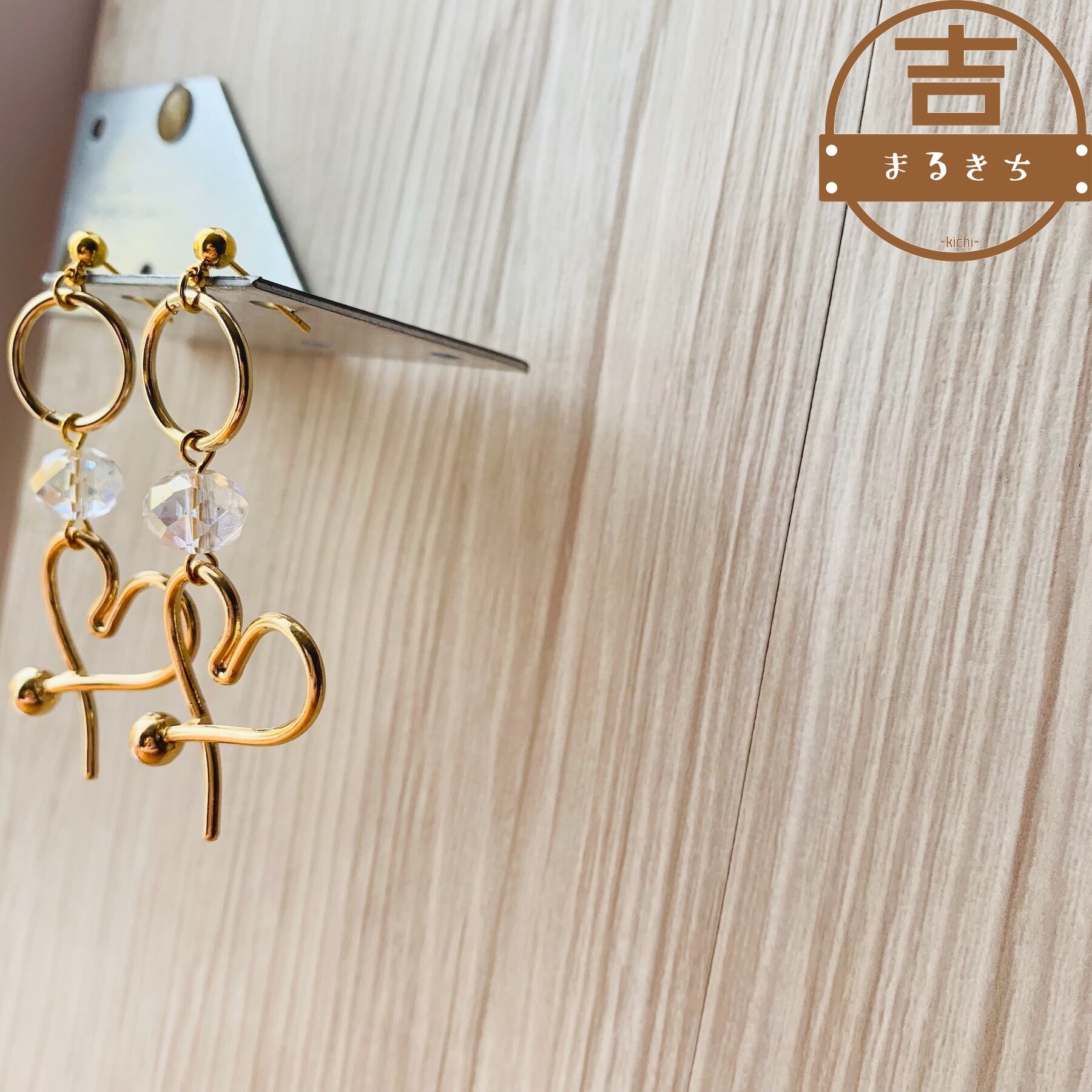 ハートのピアス◯ハートが揺れる大人可愛いピアス◯ハンドメイドピアス