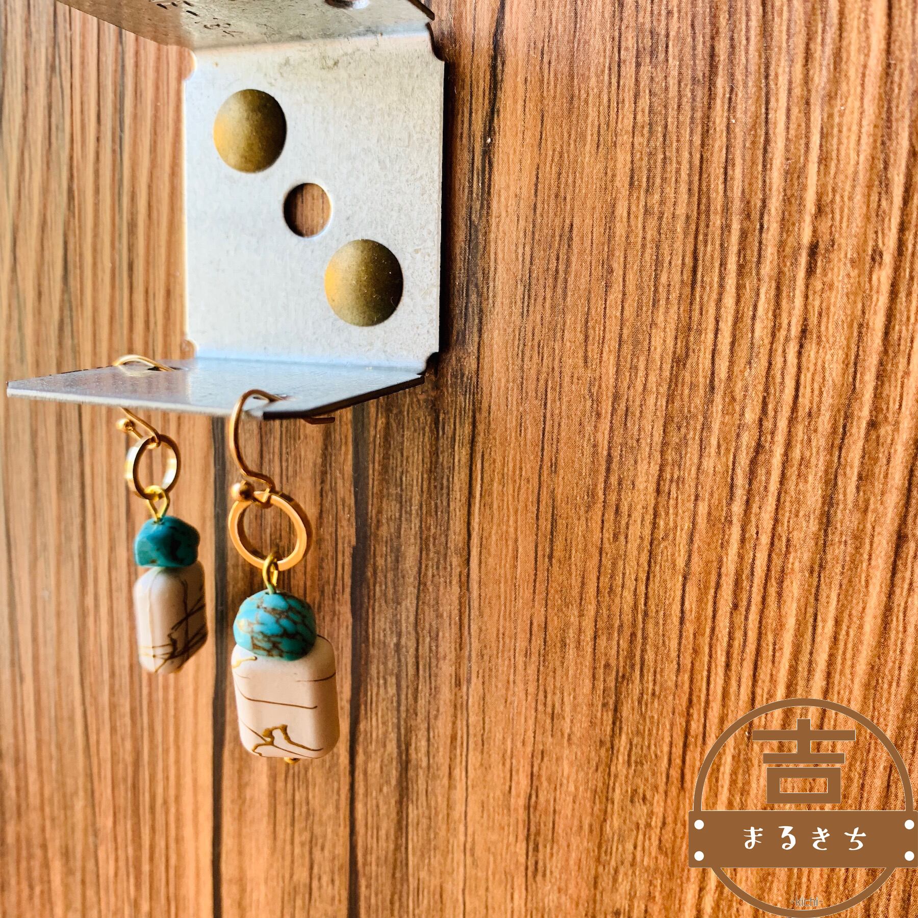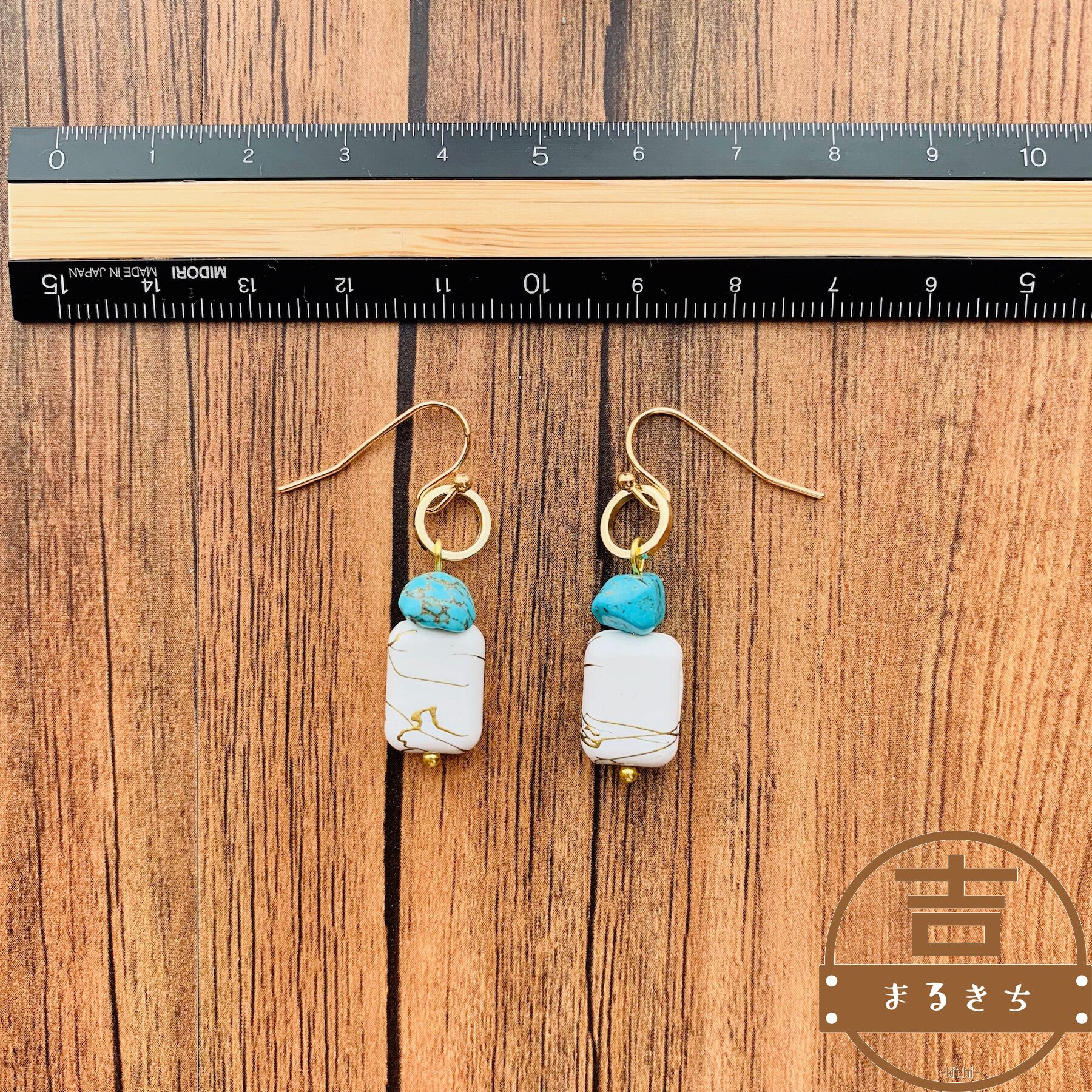 ターコイズピアス◯サマーピアス◯ターコイズカラーとホワイトの小振りな夏色ピアス◯ハンドメイドピアス