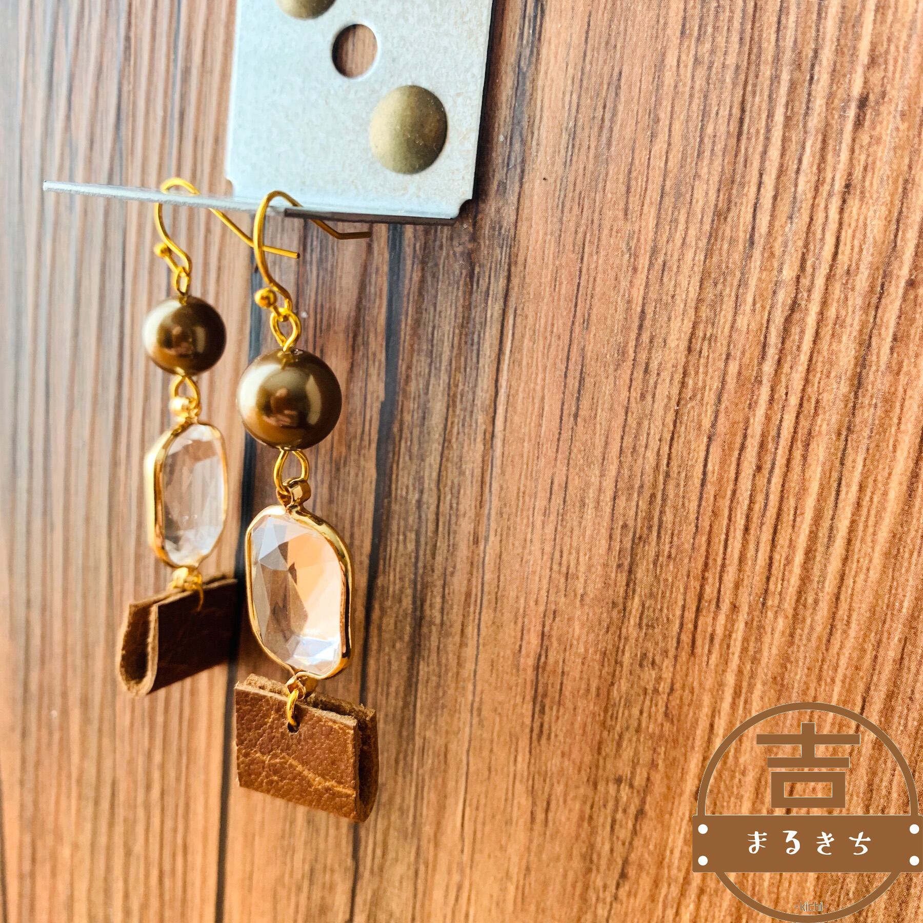 クリアピアス◯レザーとクリスタルカットのピアス◯ハンドメイドピアス◯大人ピアス