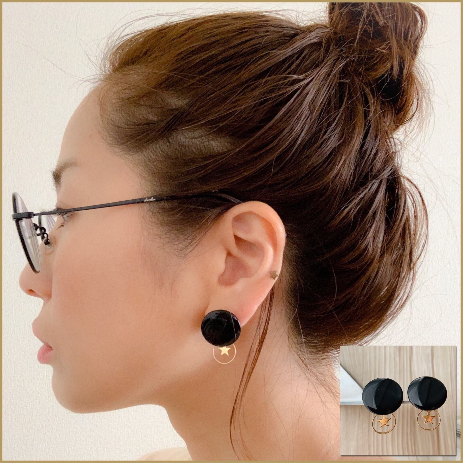 黒のボタンとゴールドの星を合わせた大人かわいいピアスになりました。