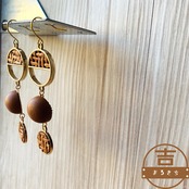 ラタンチャームにウッドを合わせたハンドメイドピアスです。