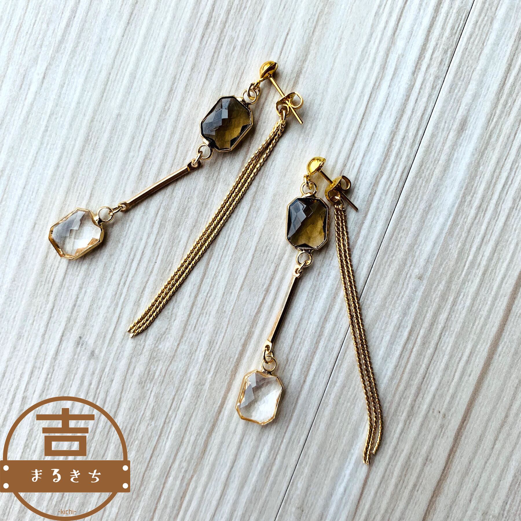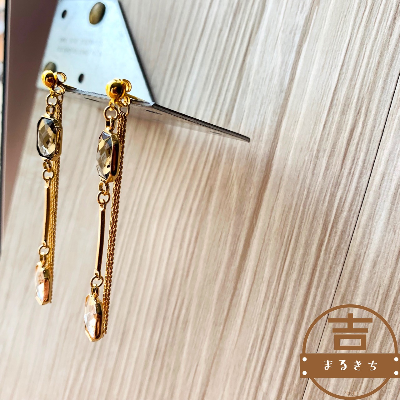 クリアピアス◯クリスタルカットチャームとチェーンで大人なバックキャッチピアス◯1点限定◯