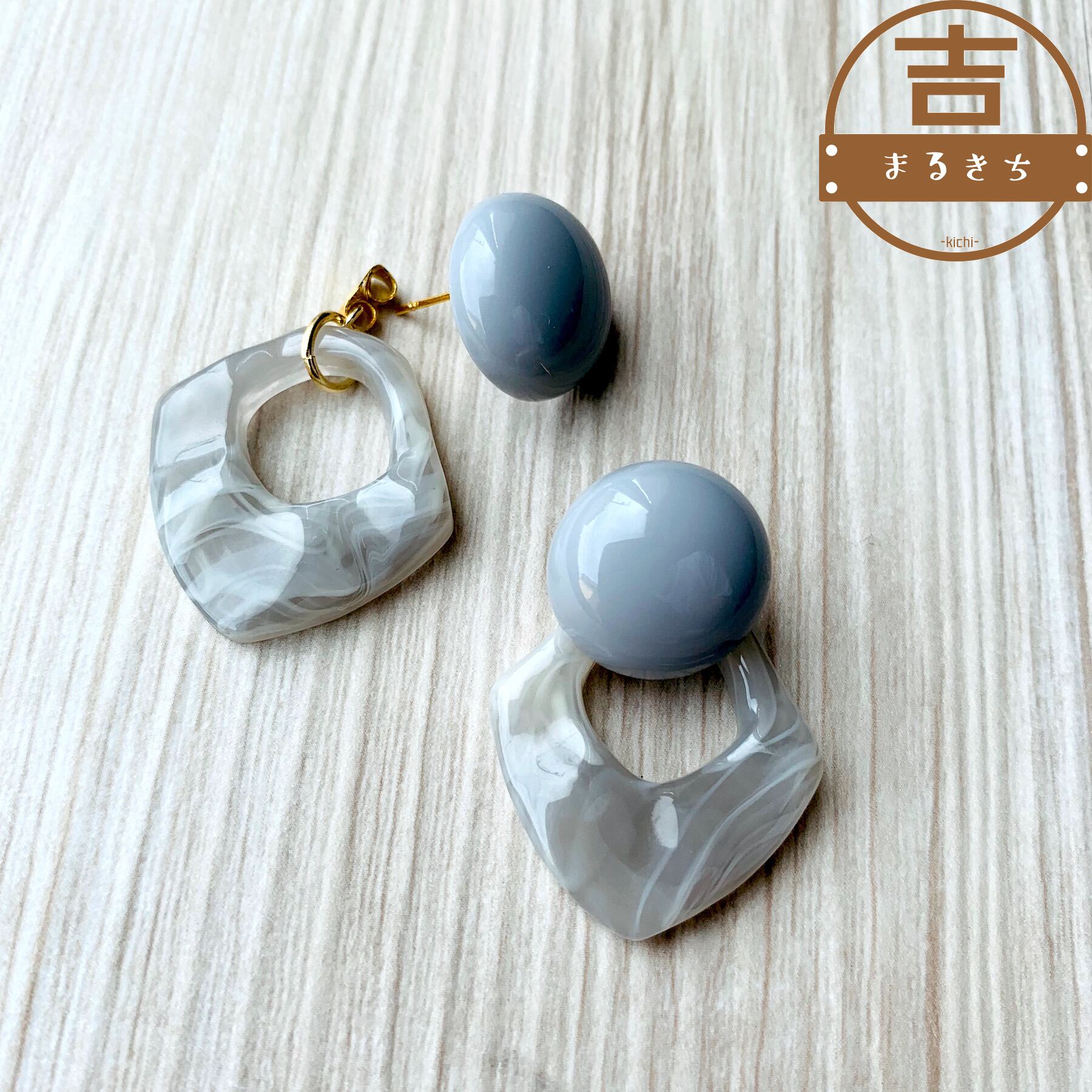 グレーピアス◯マーブル柄と丸カボションの大人可愛いピアス◯1点限定◯