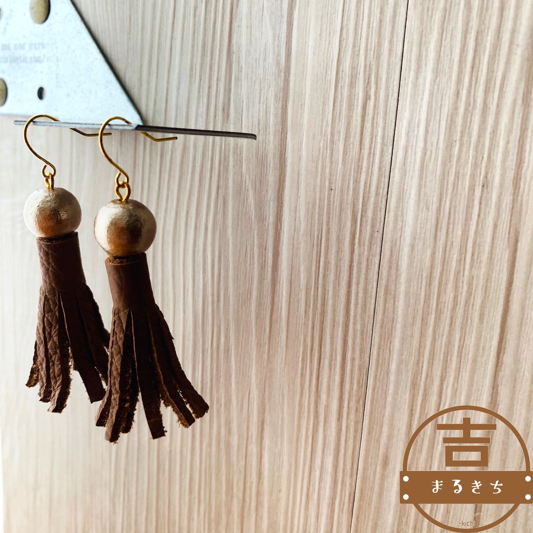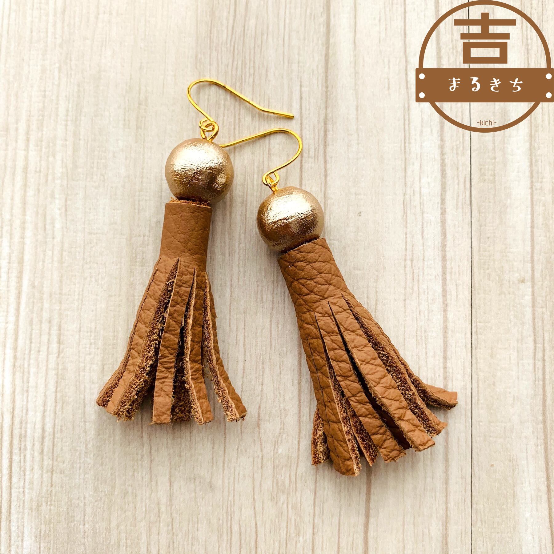 レザータッセルピアス◯コットンパール×レザー◯カジュアルピアス