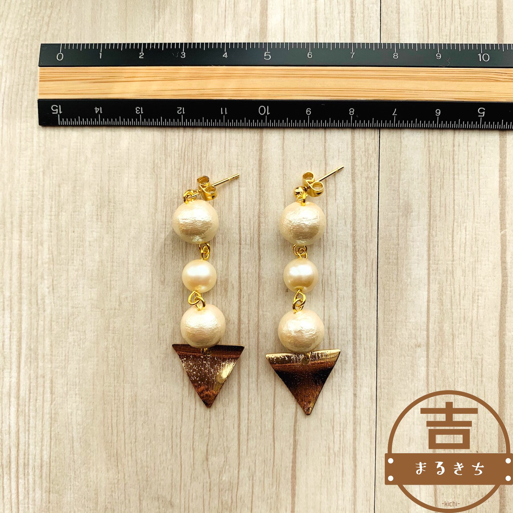 トライアングルピアス◯ゴールド×コトンパール◯サージカルステンレスピアス◯大人シンプルな三角×丸ピアス