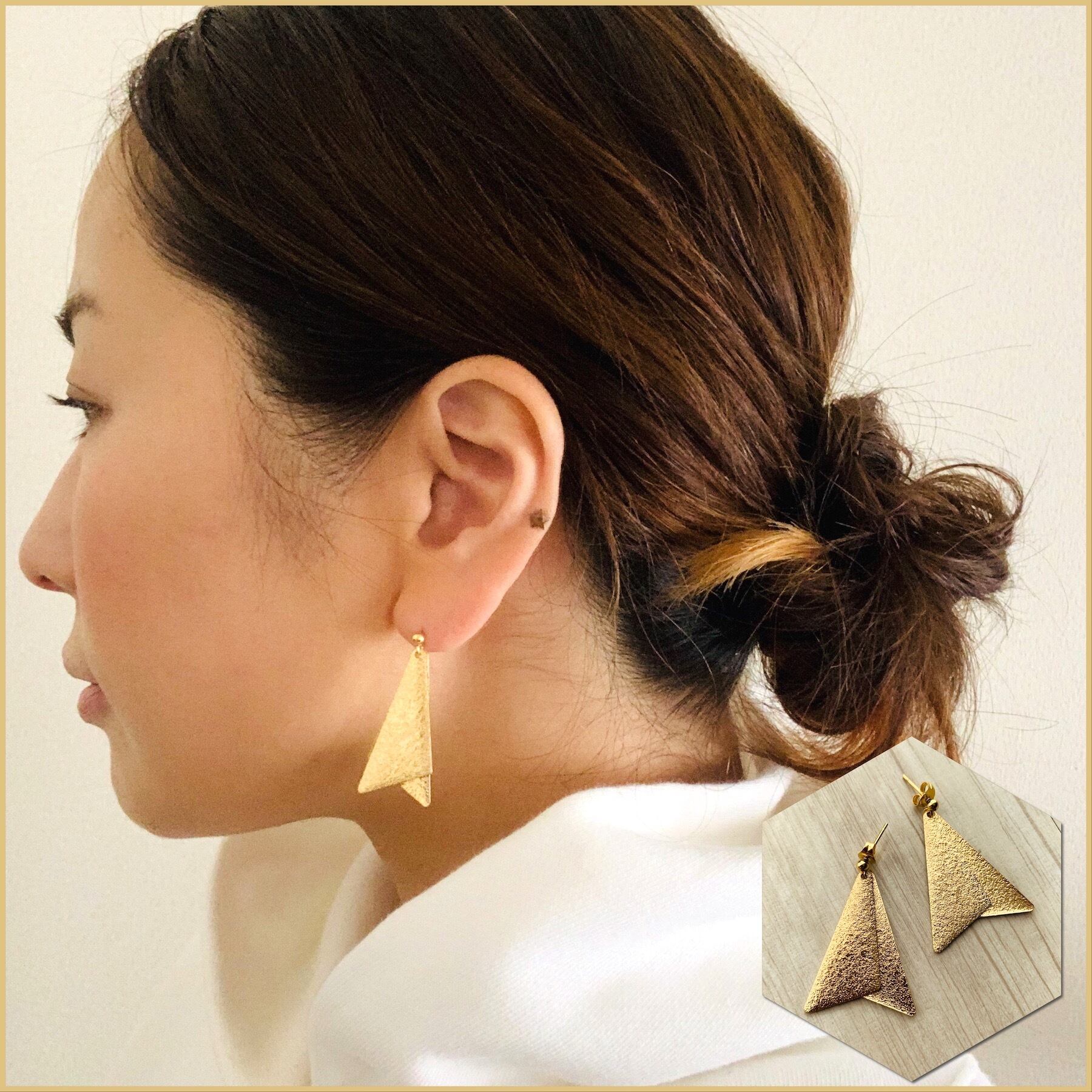 トライアングルピアス◯サージカルステンレスピアス◯ゴールドの大人シンプルピアス