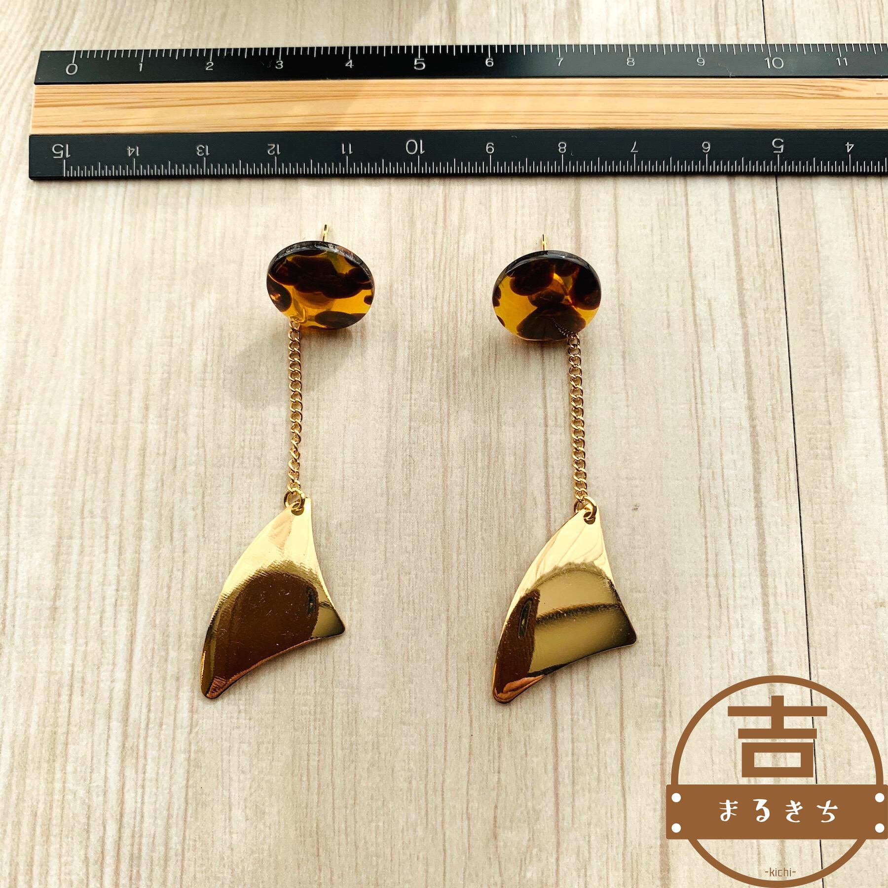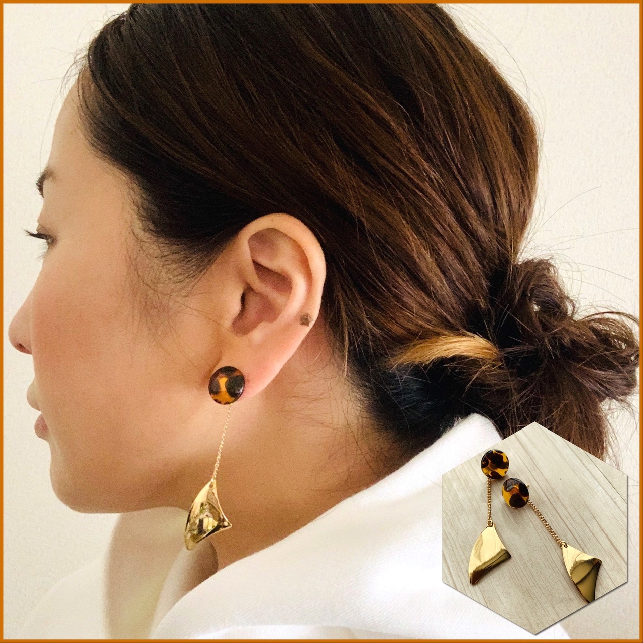 2wayカボションピアス◯べっ甲×ゴールドチェーン×トライアングル◯サージカルステンレスピアス◯大人な揺れるピアス