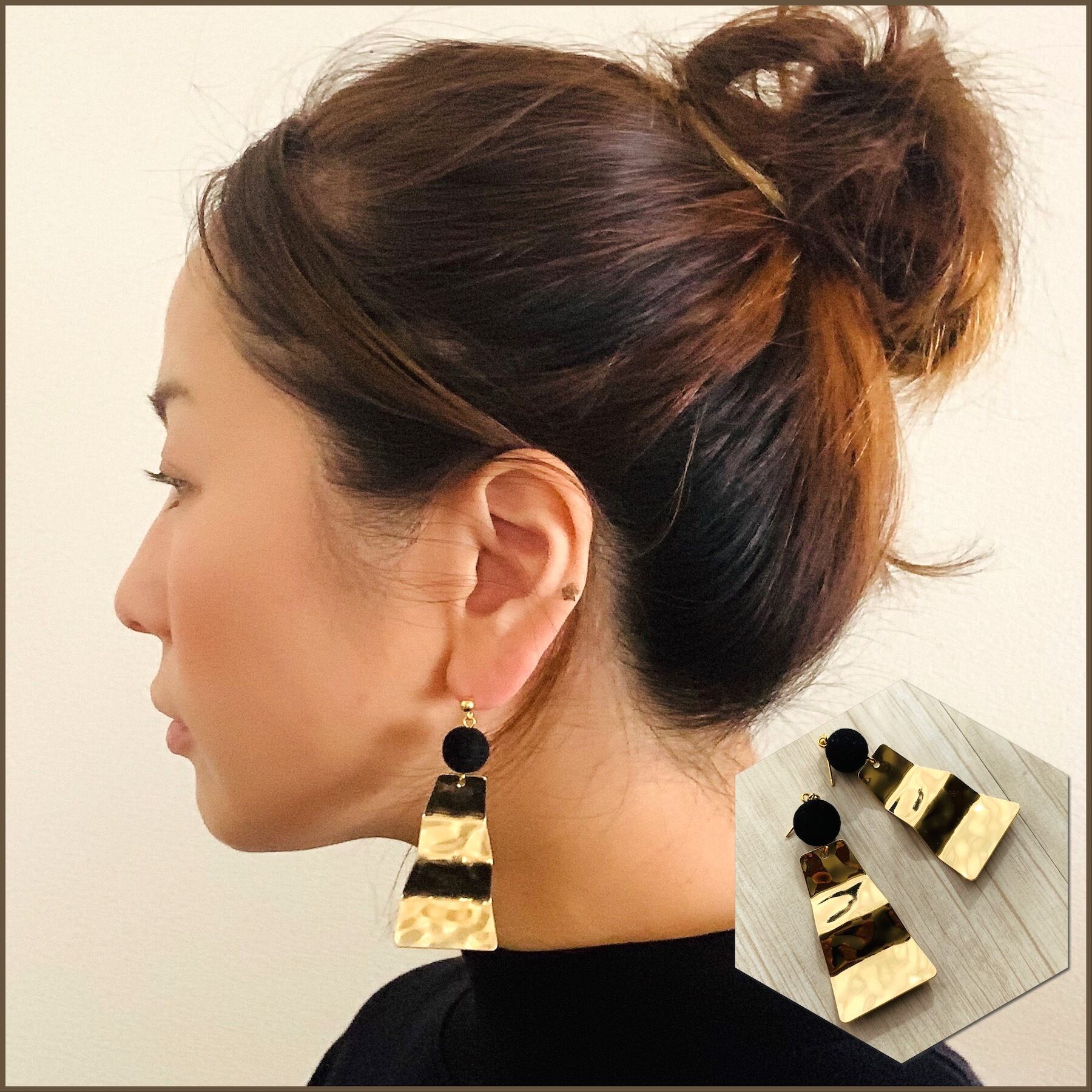 ゴージャスに存在感たっぷりの大振りゴールドピアスです。