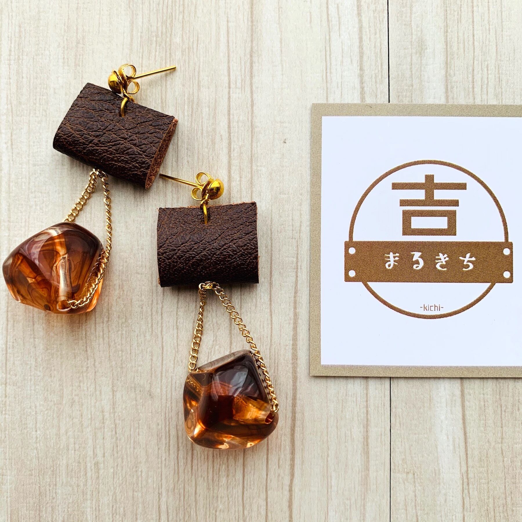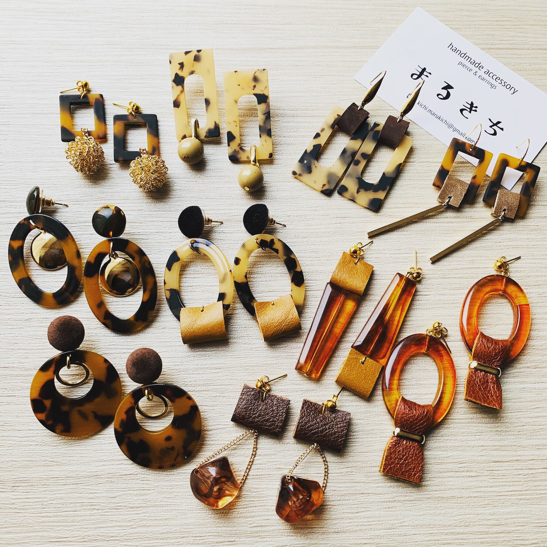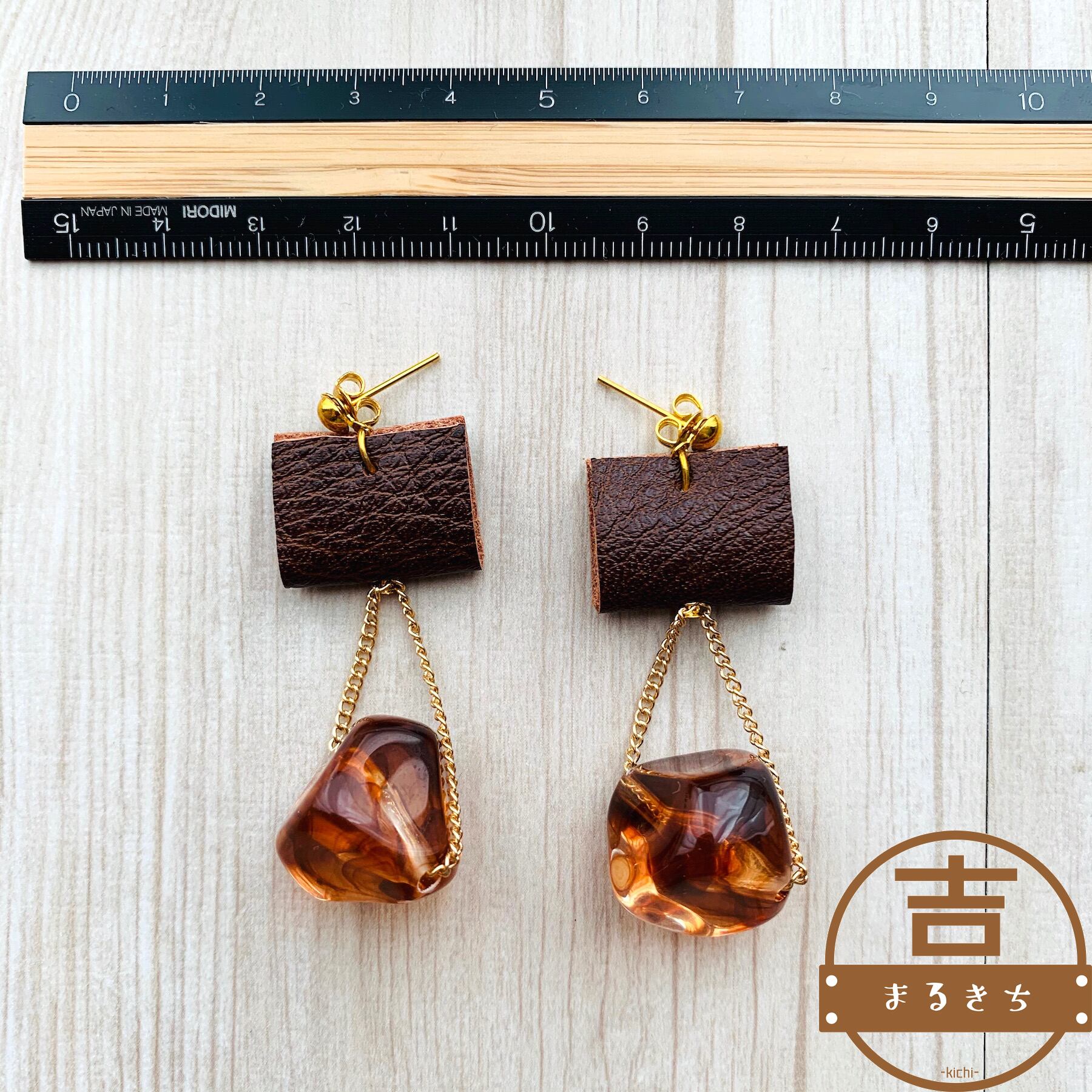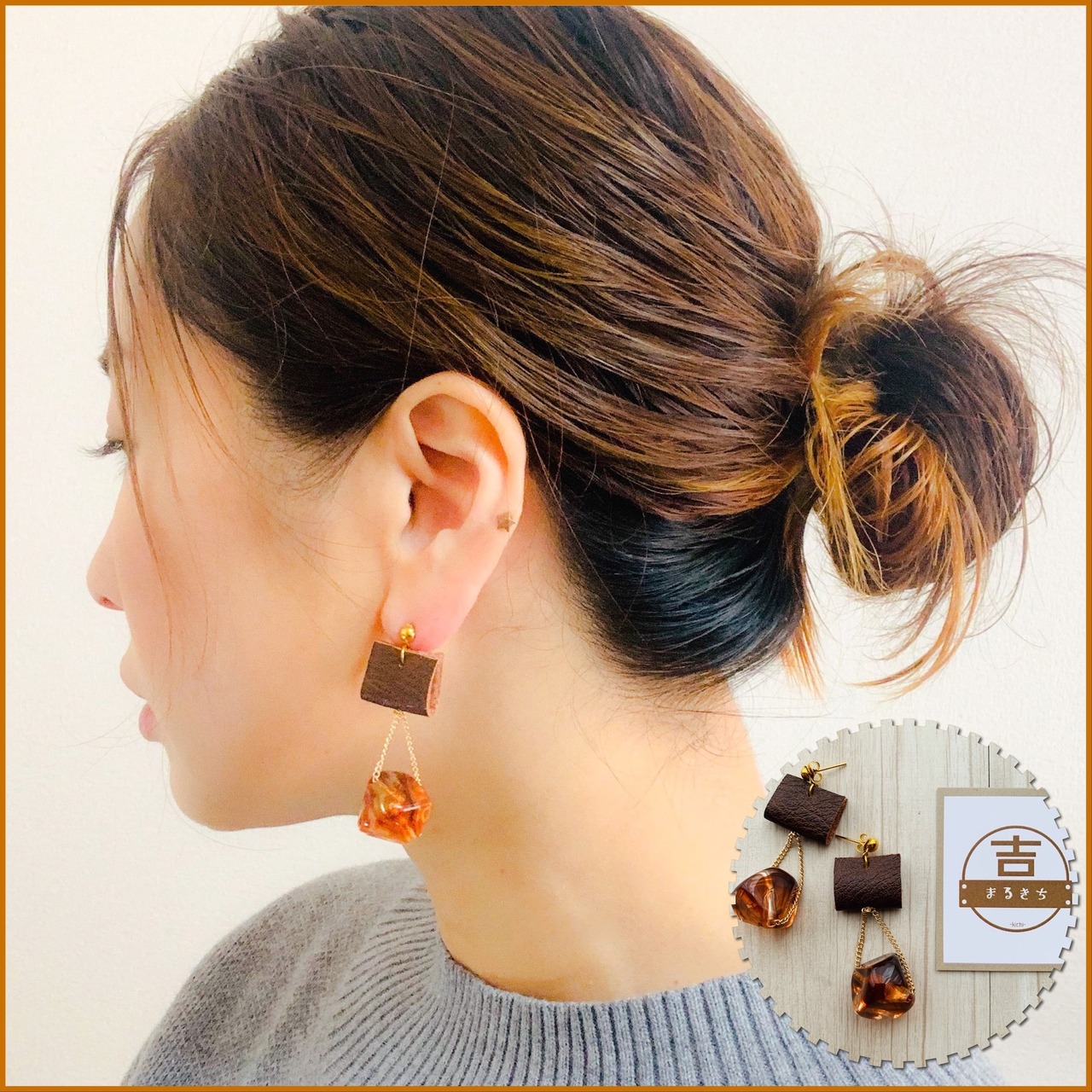 べっ甲ピアス◯べっ甲柄×レザー◯揺れる大人ピアス