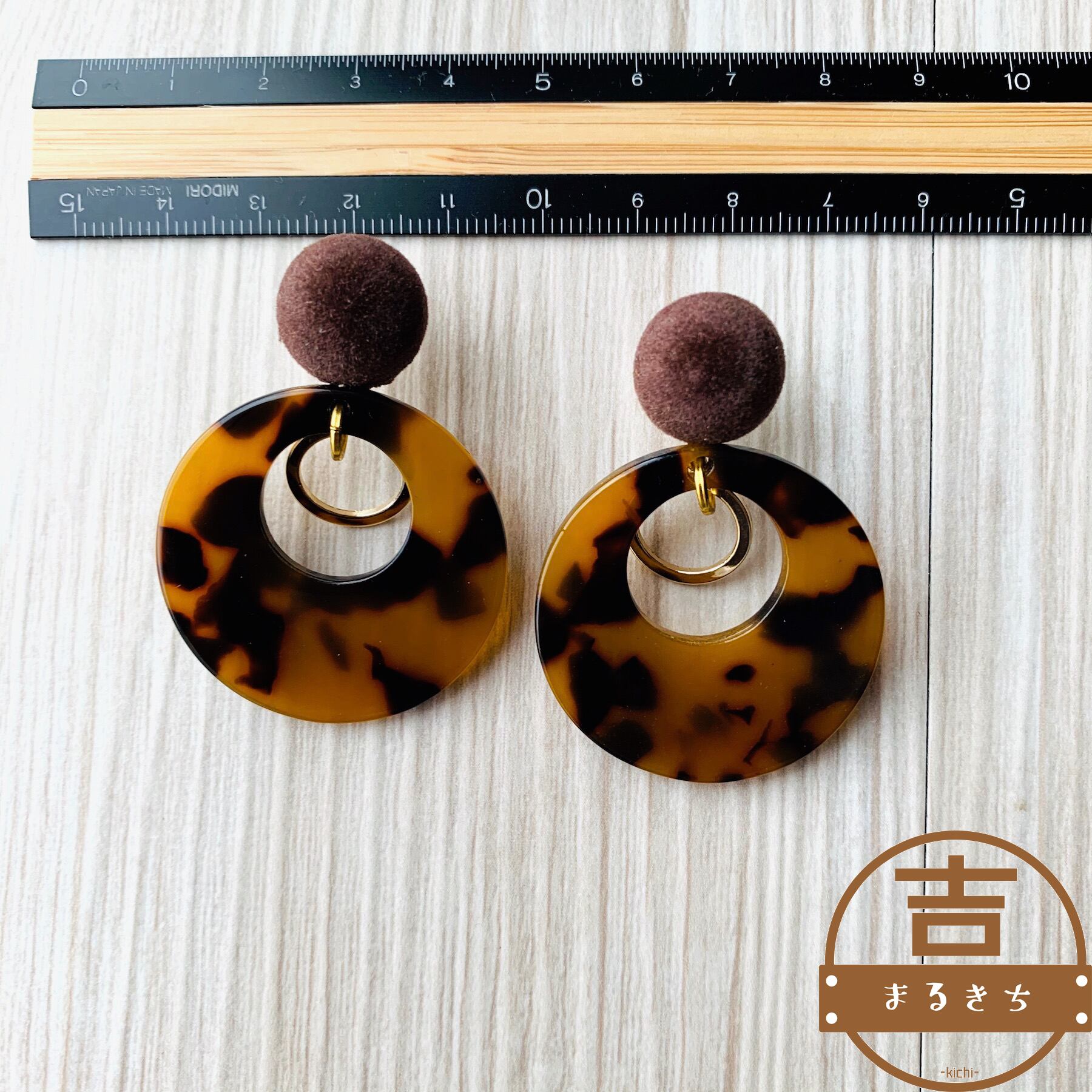 べっ甲柄とフロッキーで秋冬コーデにぴったりなブラウンピアス。