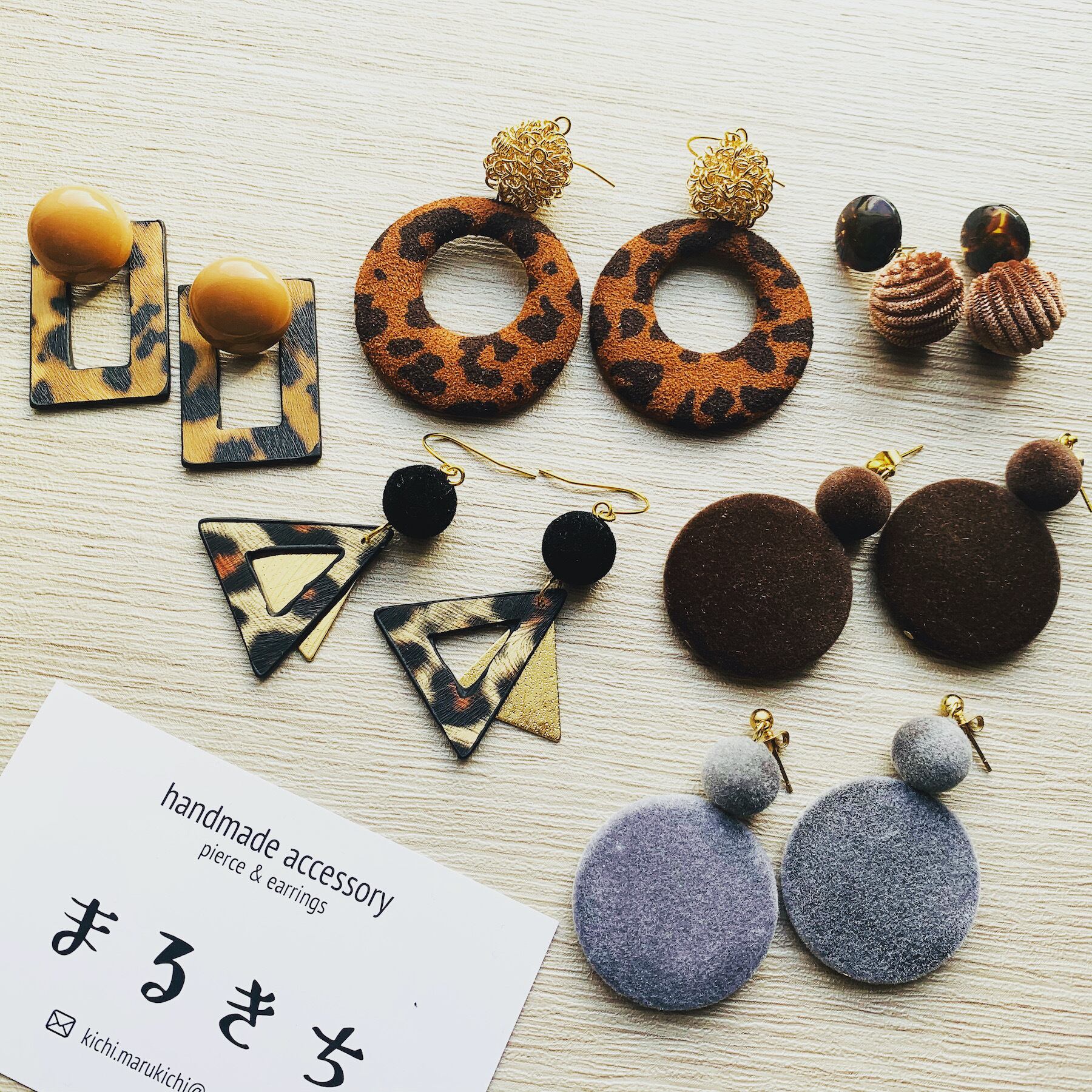 レオパード柄とフロッキービーズ、ゴールドパーツを合わせた、大人ピアスです。