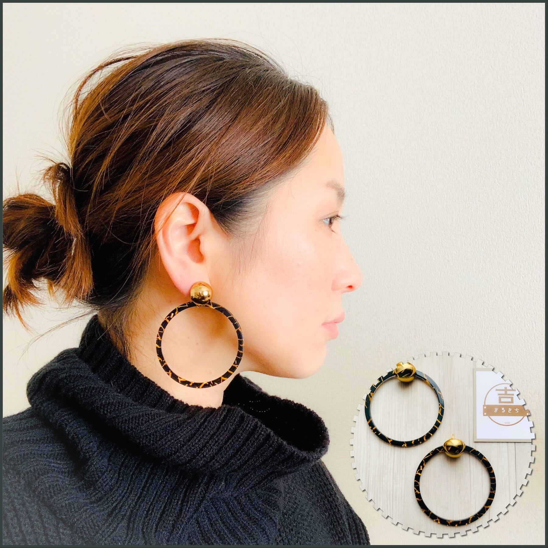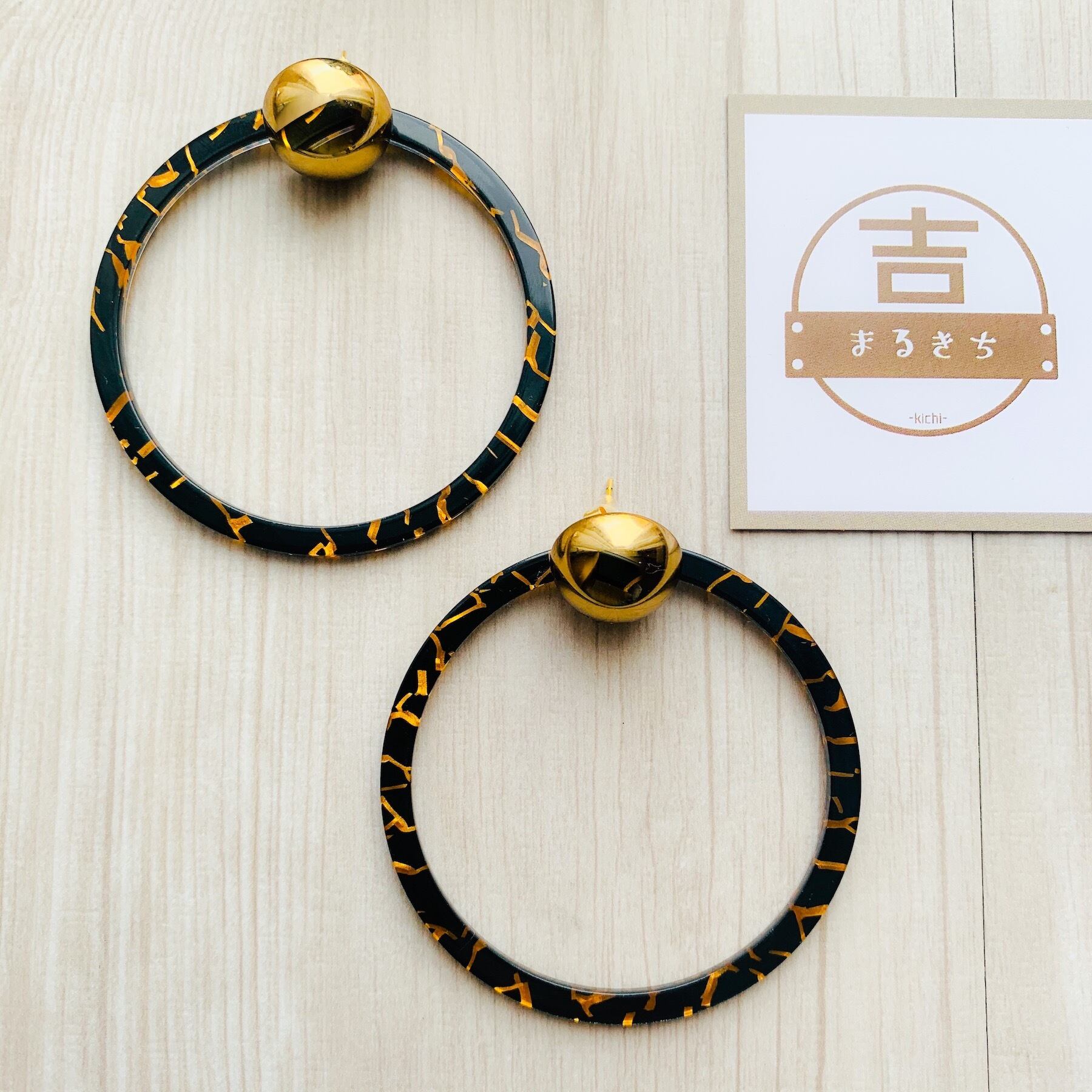 モード系ピアス◯幾何学模様ピアス◯ブラック×ゴールドライン◯大振り2wayピアス