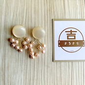 小枝ピアス○ホワイト×ピンク○2wayピアス