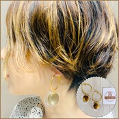 ゴールドのラウンドプレートにクリアリングを合わせた使いやすい大人なピアス。