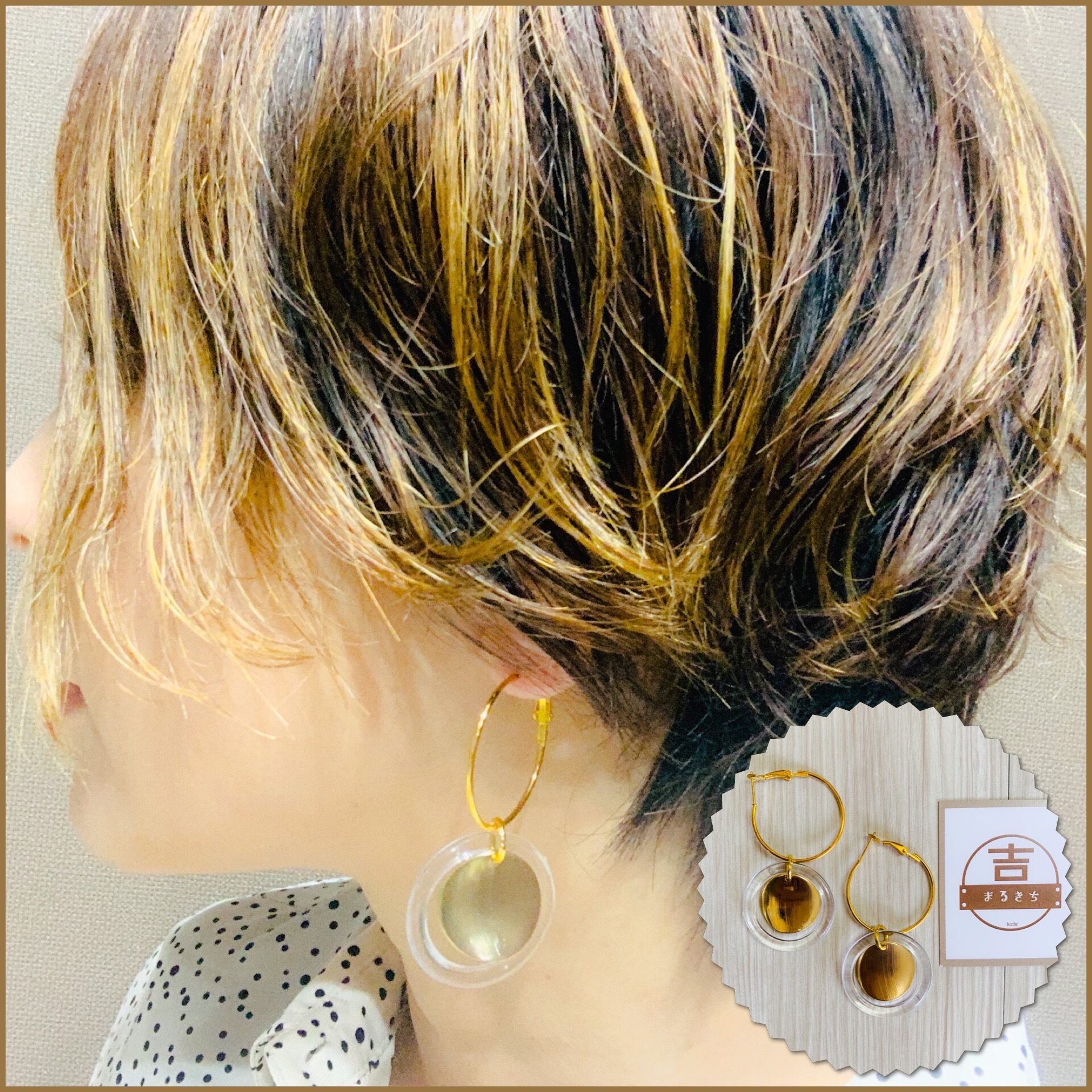 フープピアス○ゴールド×クリア○大ぶりな大人ピアス