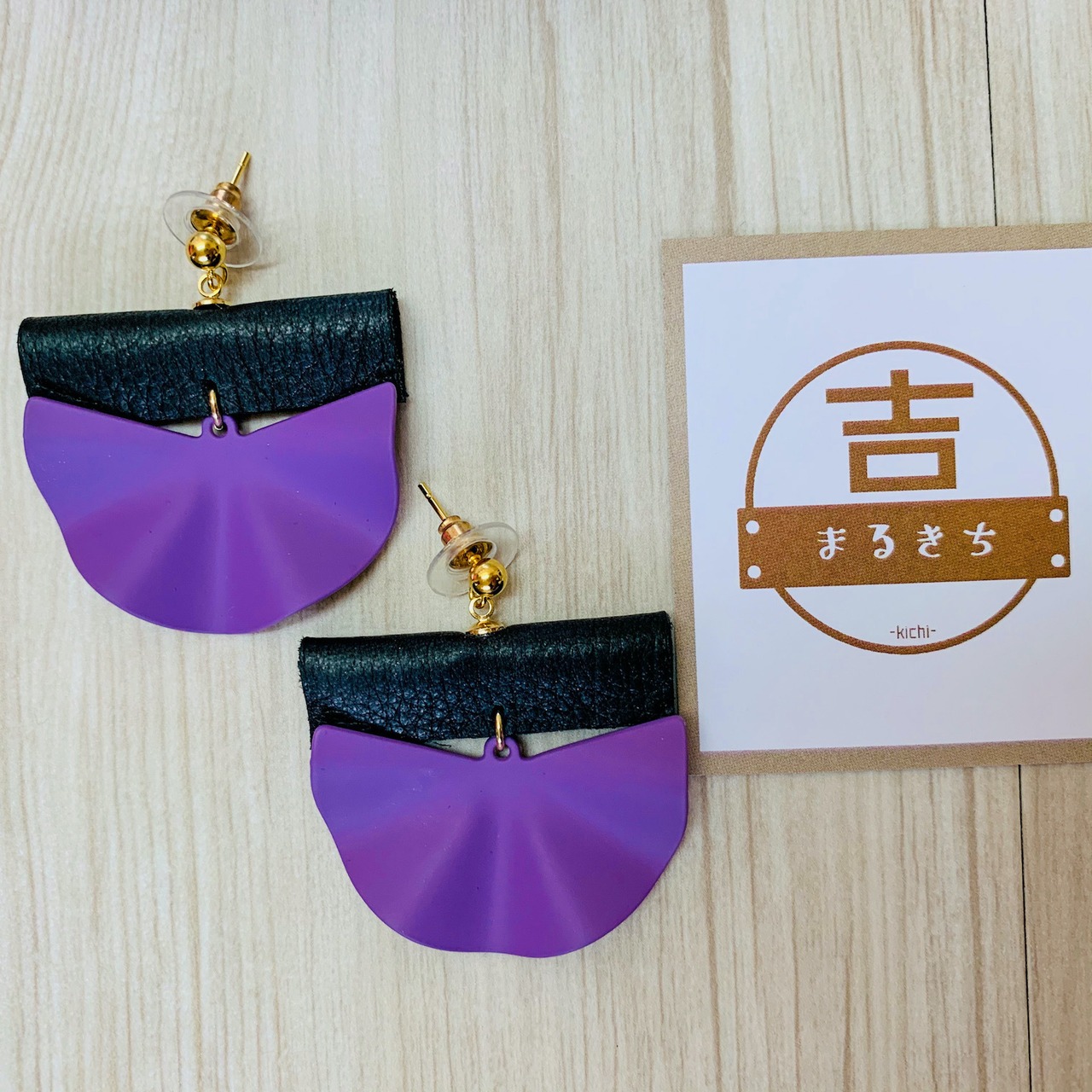 扇ピアス○扇型×スクエア○大ぶり個性派ピアス○ブラック×パープル