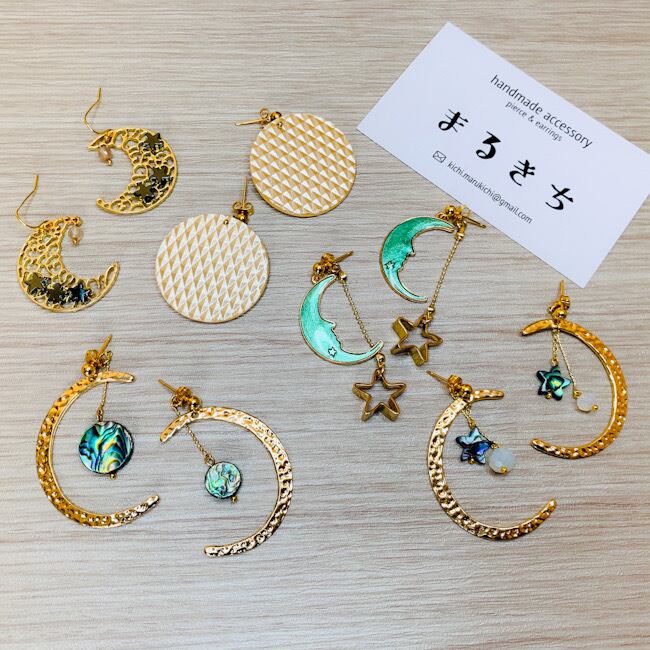 moonピアス○新月×丸○揺れる新月ピアス○2wayピアス○-moonシリーズ-