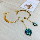 新月と地球をイメージしたシェルビーズが揺れる2wayピアスです。