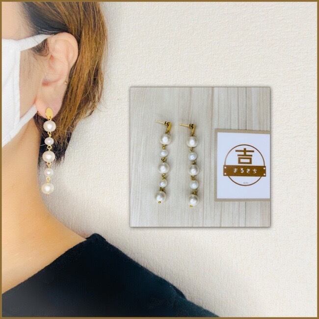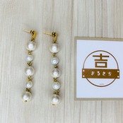 ゆらゆらと、2種類のパールが揺れるロングピアスです。