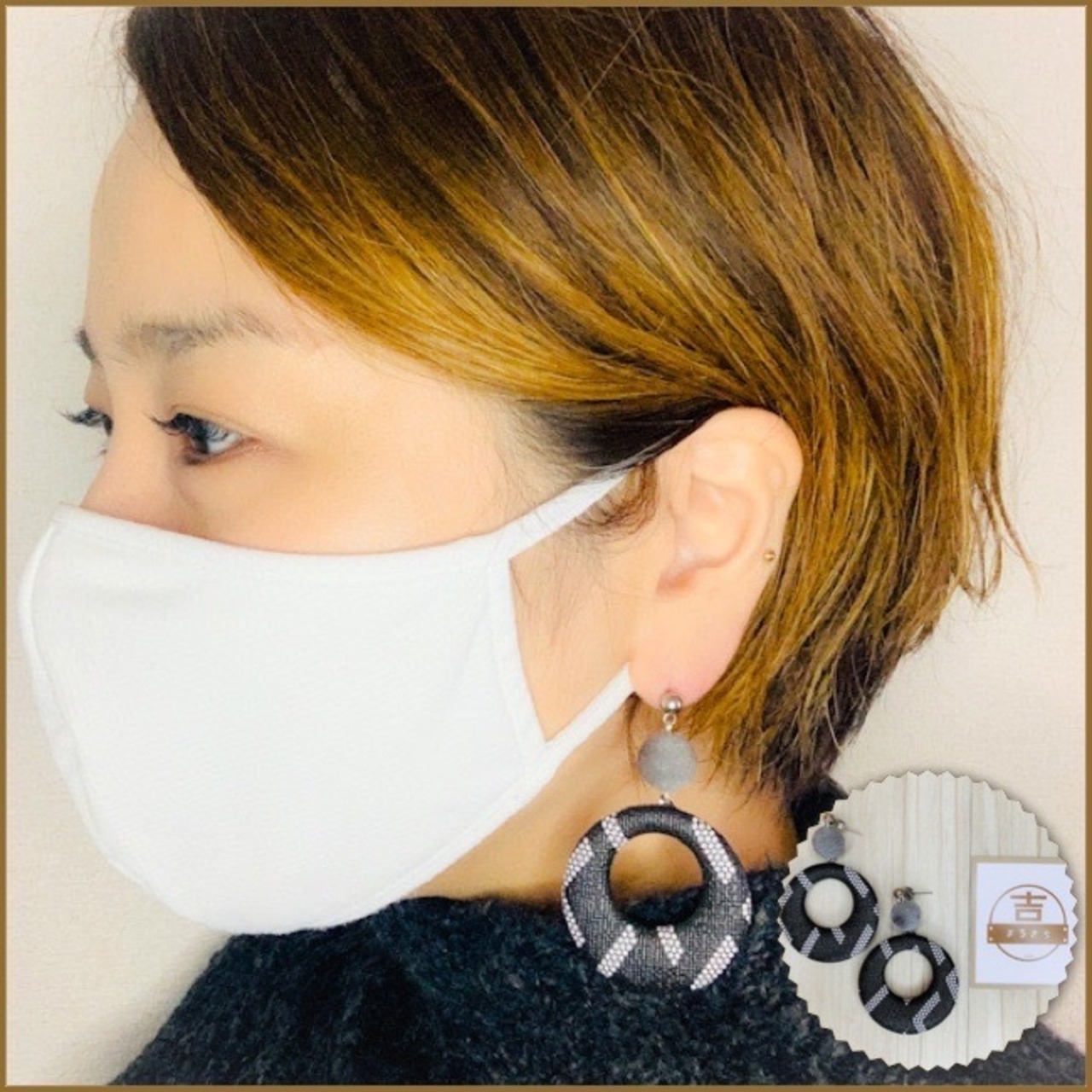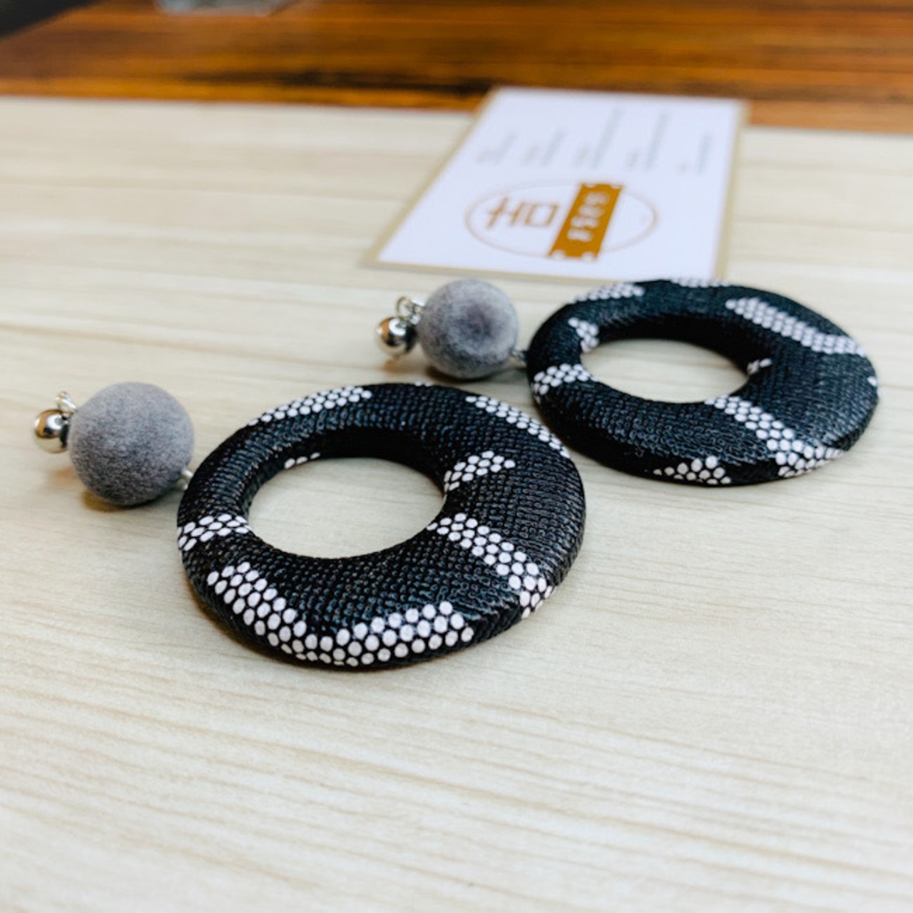 大ぶりリングピアス○グレー×ブラック○-silverシリーズ-