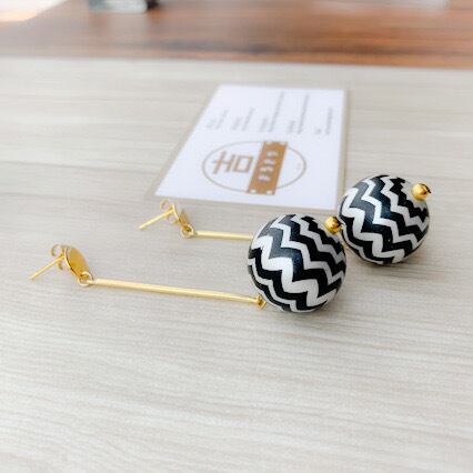 デザインポストピアスにロングスティック、シェブロン柄ビーズの個性的なピアス。