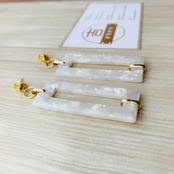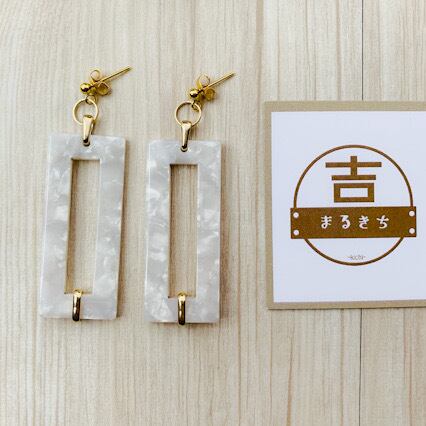 大理石風のホワイトスクエアにゴールドパーツで個性的で大人キレイなピアス。